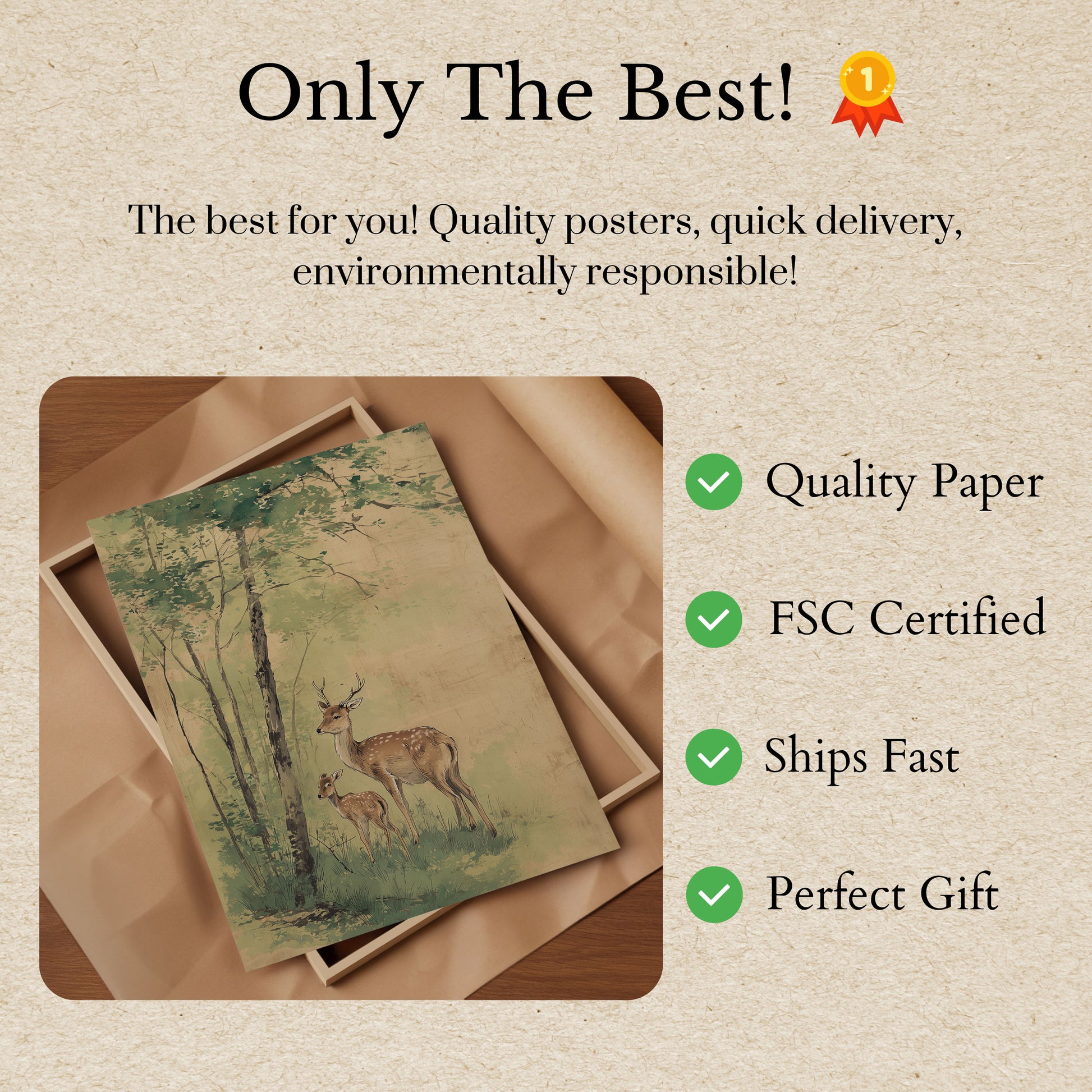 - Wir verwenden FSC-zertifiziertes Papier und Rahmen oder gleichwertige Zertifizierungen. Dies ist besser für Mensch und Planet.