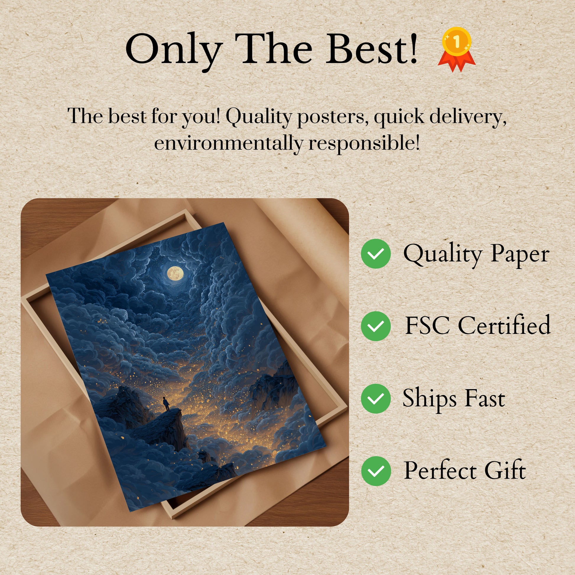 All our Posters are made with thick, premium 170 g/m² paper that's FSC-certified for eco-friendly assurance.