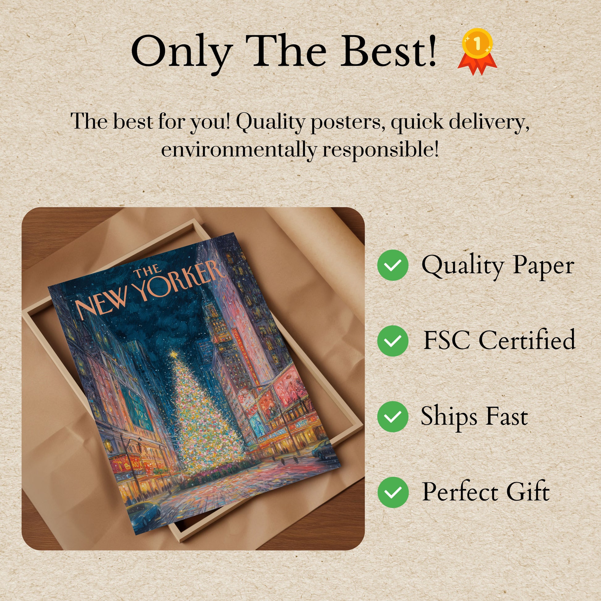 Experience the enchanting holiday spirit of New York City with this breathtaking illustration featuring a dazzling Christmas tree illuminating Times Square. The artwork captures the magical winter night with a vibrant, luminous tree surrounded by the city's iconic skyscrapers and glowing billboards, creating a mesmerizing scene of urban holiday cheer. Soft snowflakes dance in the deep blue background, bringing a sense of warmth and wonder to this stunning New York Christmas scene.
