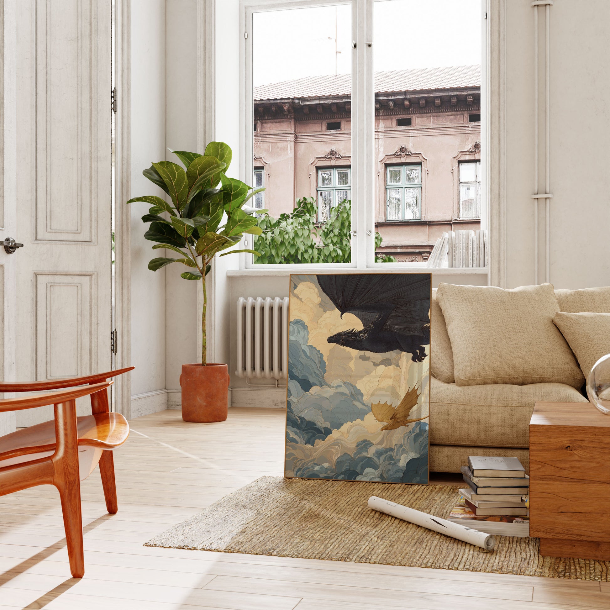 Dragons in Cloudy Skies Poster