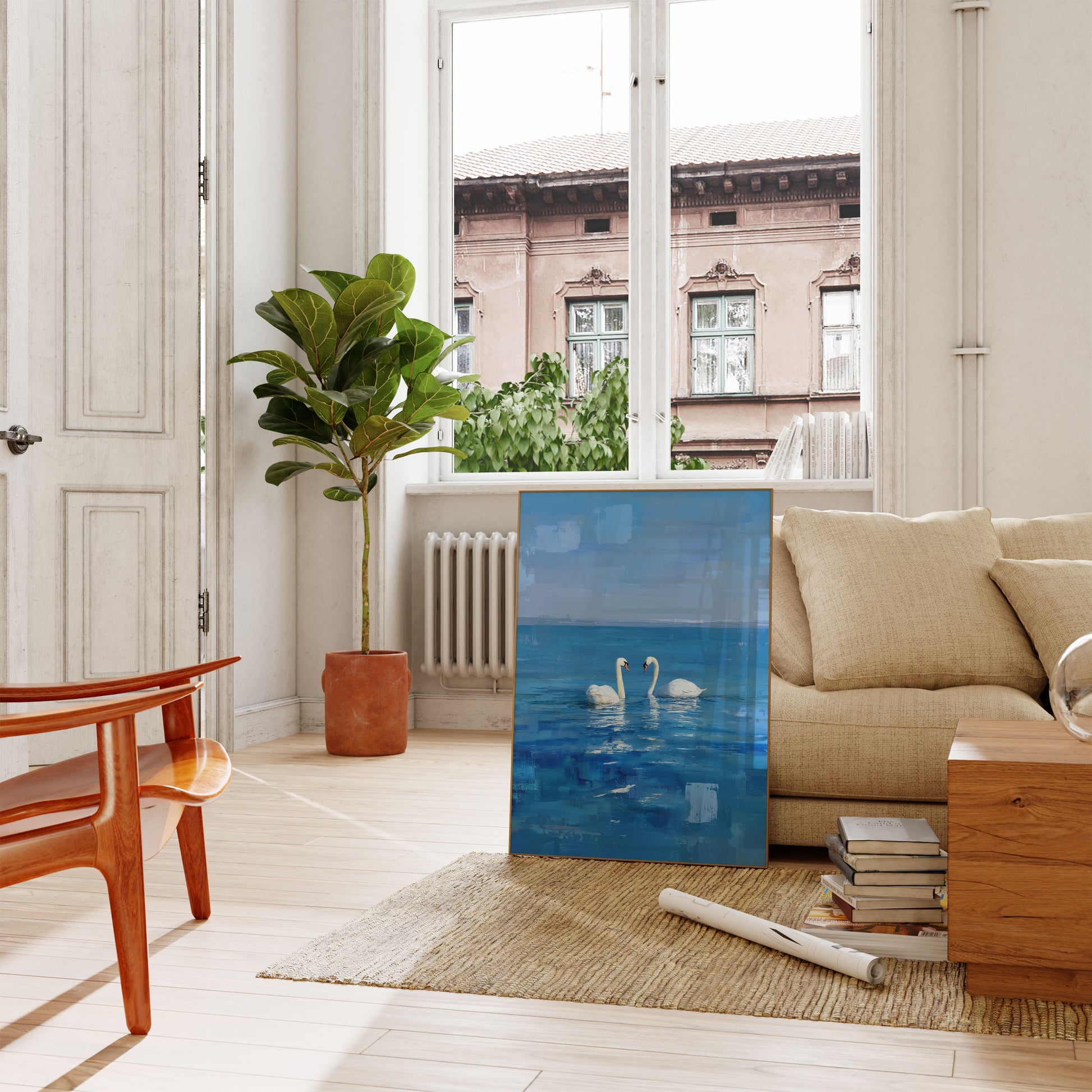 Swans in Blue Harmony Poster