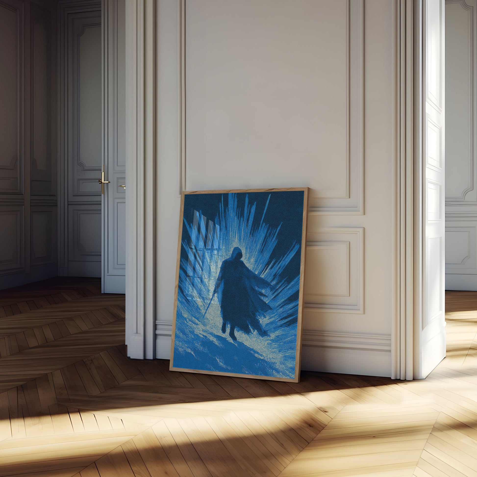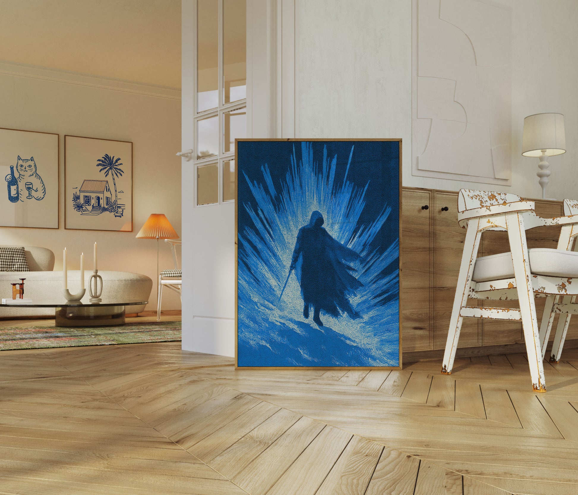 Captura la emoción de la ola perfecta con este impresionante póster de surfista que captura la energía dinámica de los deportes acuáticos. La figura silueteada cabalga elegantemente a través de una ráfaga de luz azul luminosa y espuma, creando un sentido electrizante de movimiento y aventura. El patrón de ráfaga radiante que se irradia detrás del surfista transmite poder, libertad y el momento emocionante cuando el ser humano se encuentra con la naturaleza—perfecto para cualquiera que ame el océano, los deportes acuáticos o las escenas de acción inspiradoras.