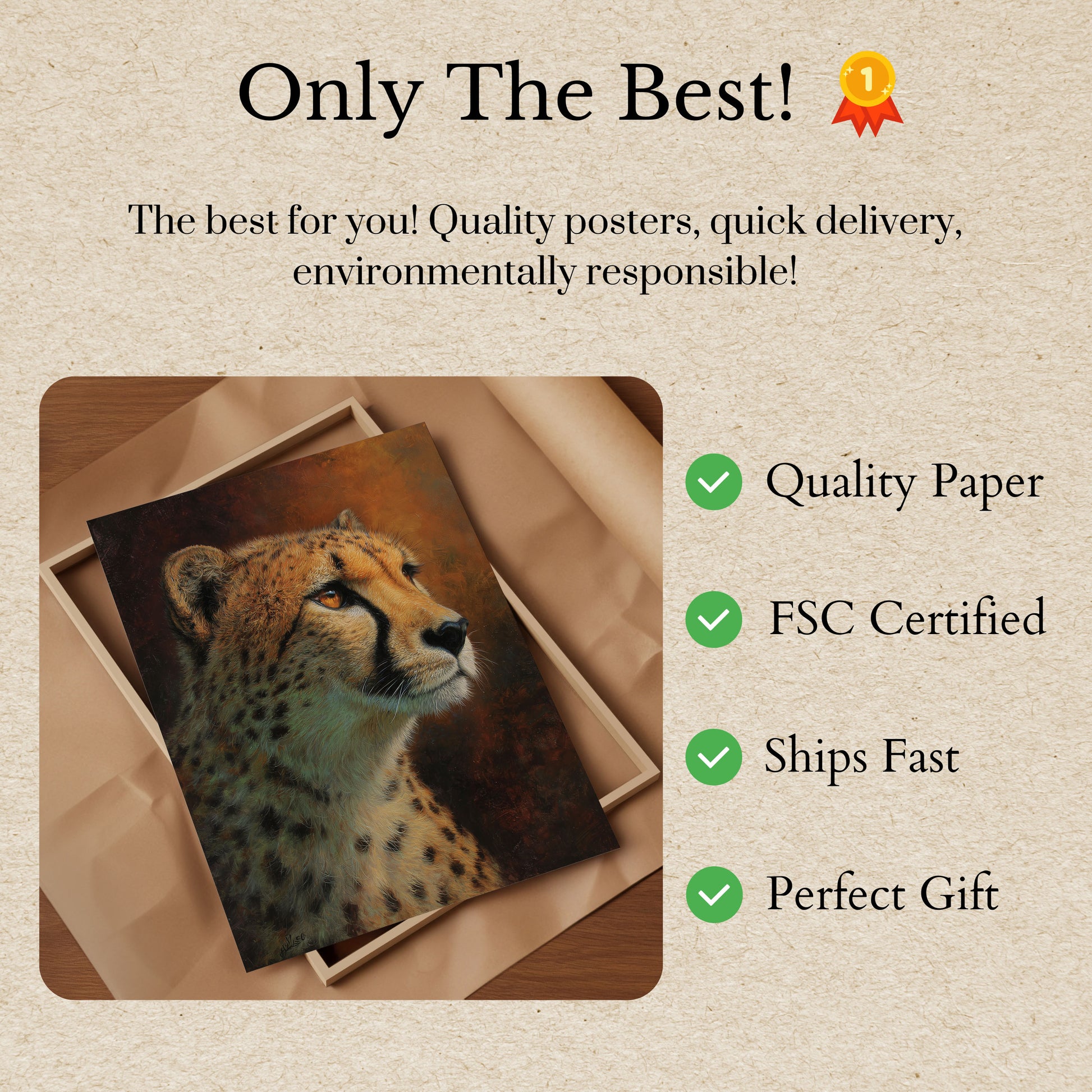 Todos nuestros carteles están elaborados con papel grueso de primera calidad de 170 g/m² con certificación FSC que garantiza su respeto al medio ambiente.