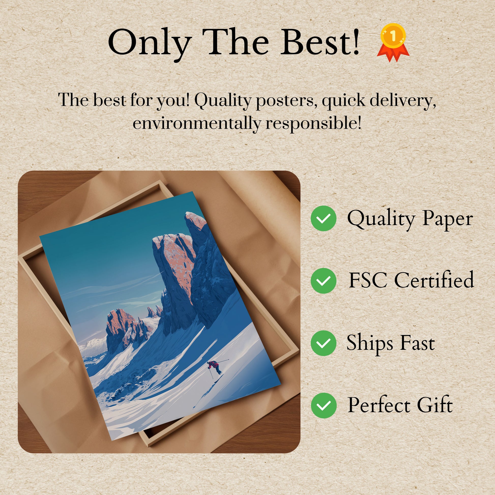 Todos nuestros carteles están elaborados con papel grueso de primera calidad de 170 g/m² con certificación FSC que garantiza su respeto al medio ambiente.