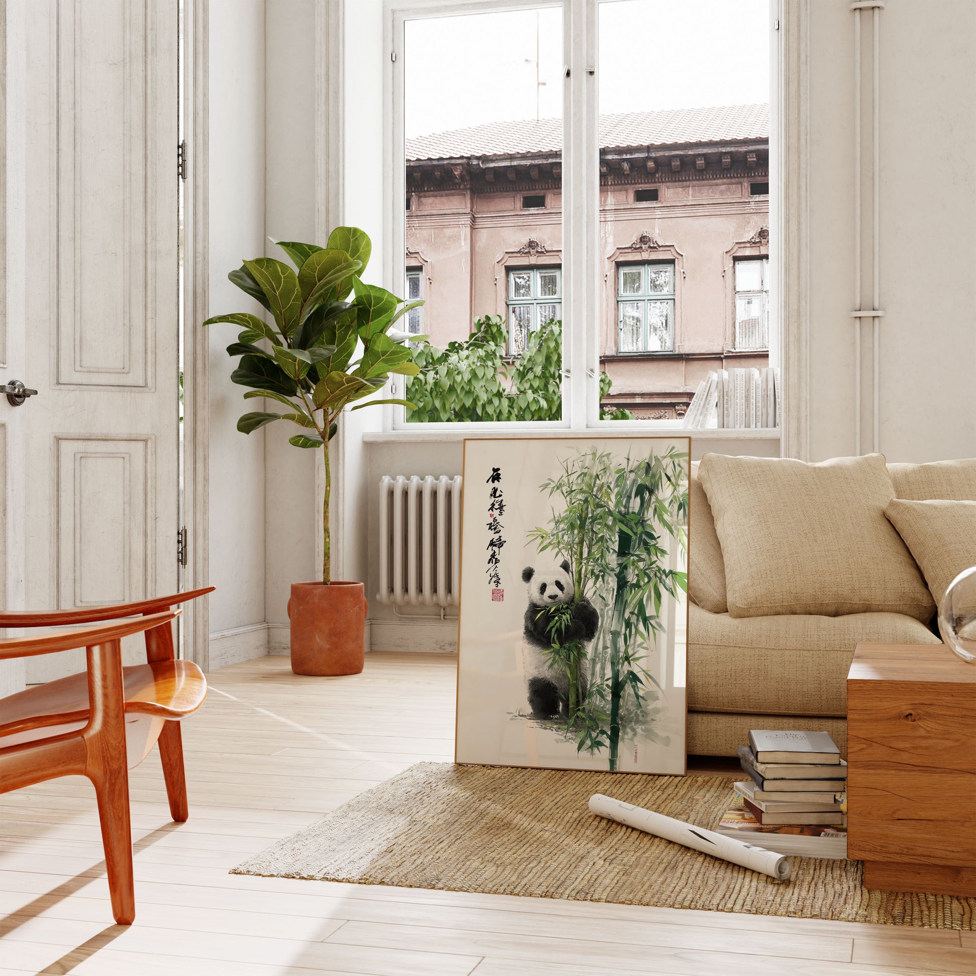 Póster de panda del bosque de bambú