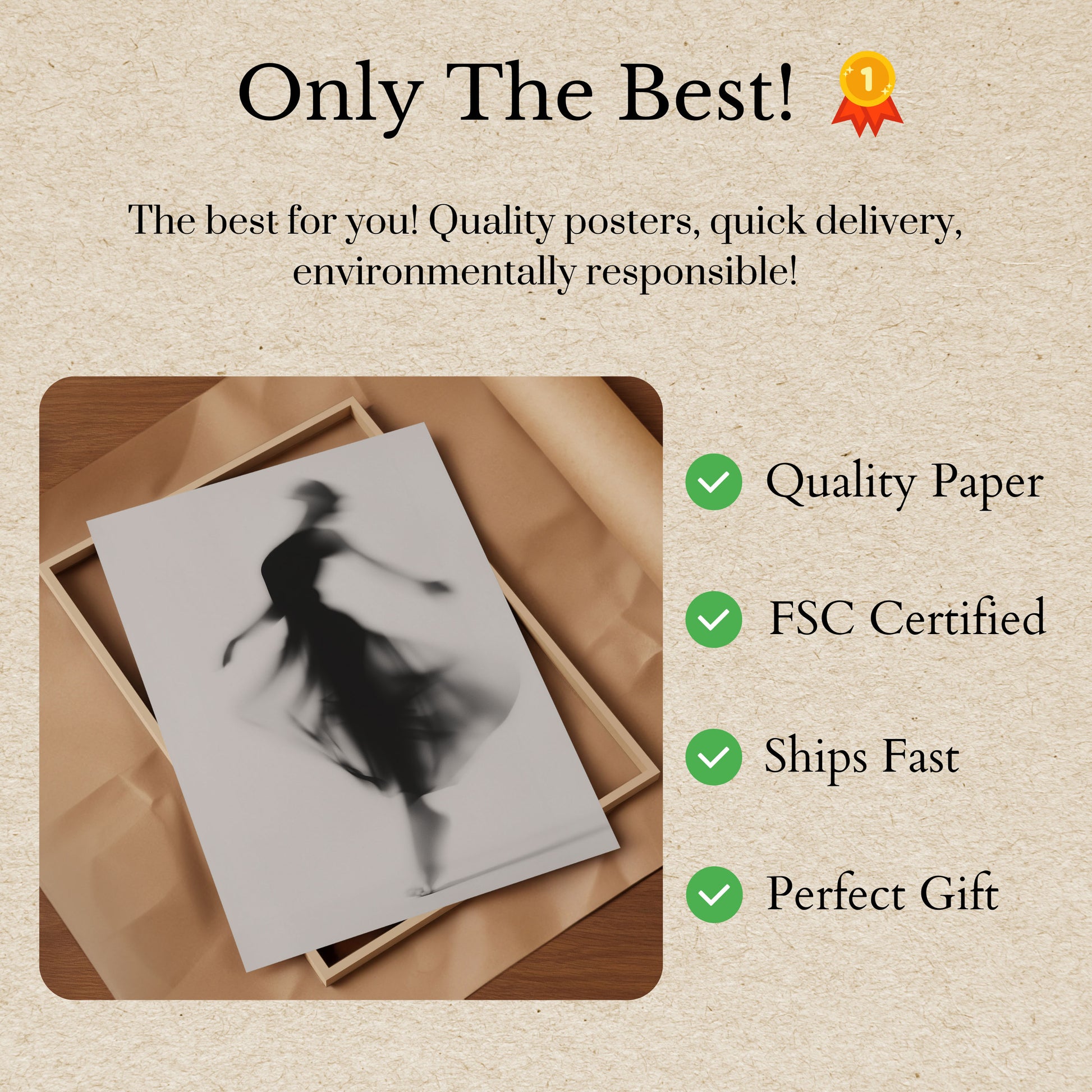 Capture the ethereal grace of movement frozen in time with this mesmerizing black and white dance silhouette. The blurred motion reveals a dynamic ballet pose, creating a sense of fluidity and emotion that seems to dance between reality and abstraction. This artistic print transforms the human form into a poetic expression of motion and elegance.