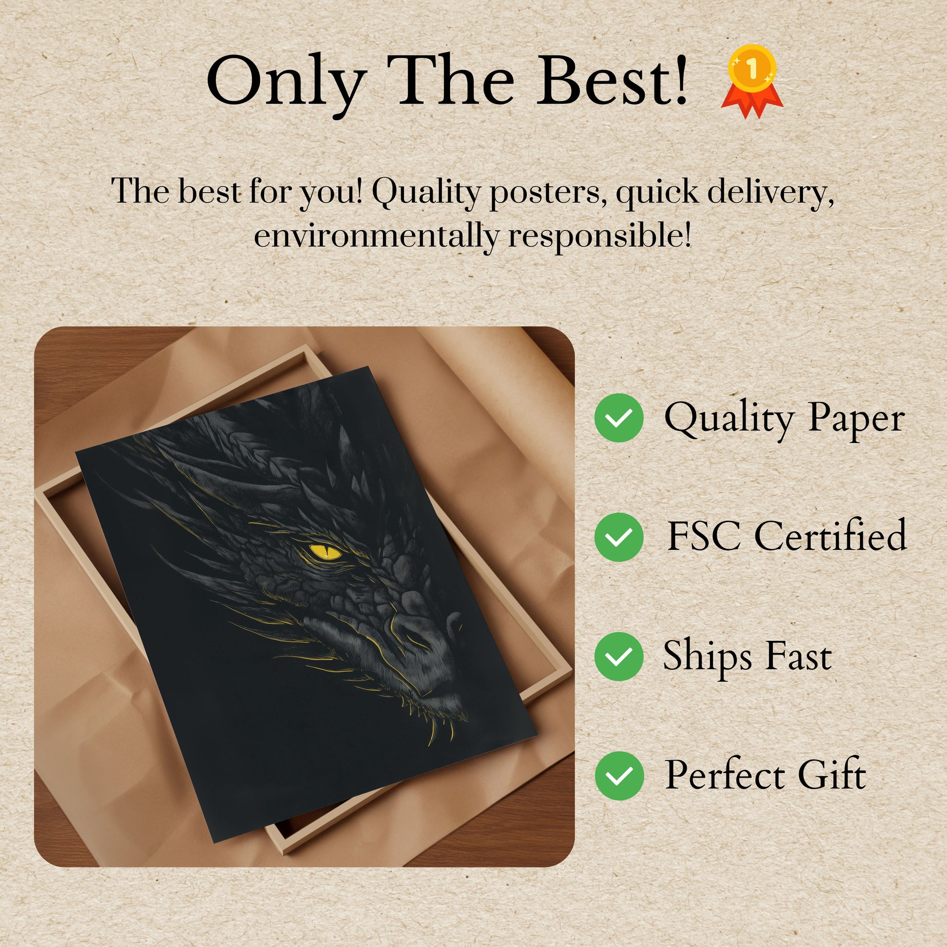 Póster del Dragón de Ojos Dorados con Escamas Oscuras