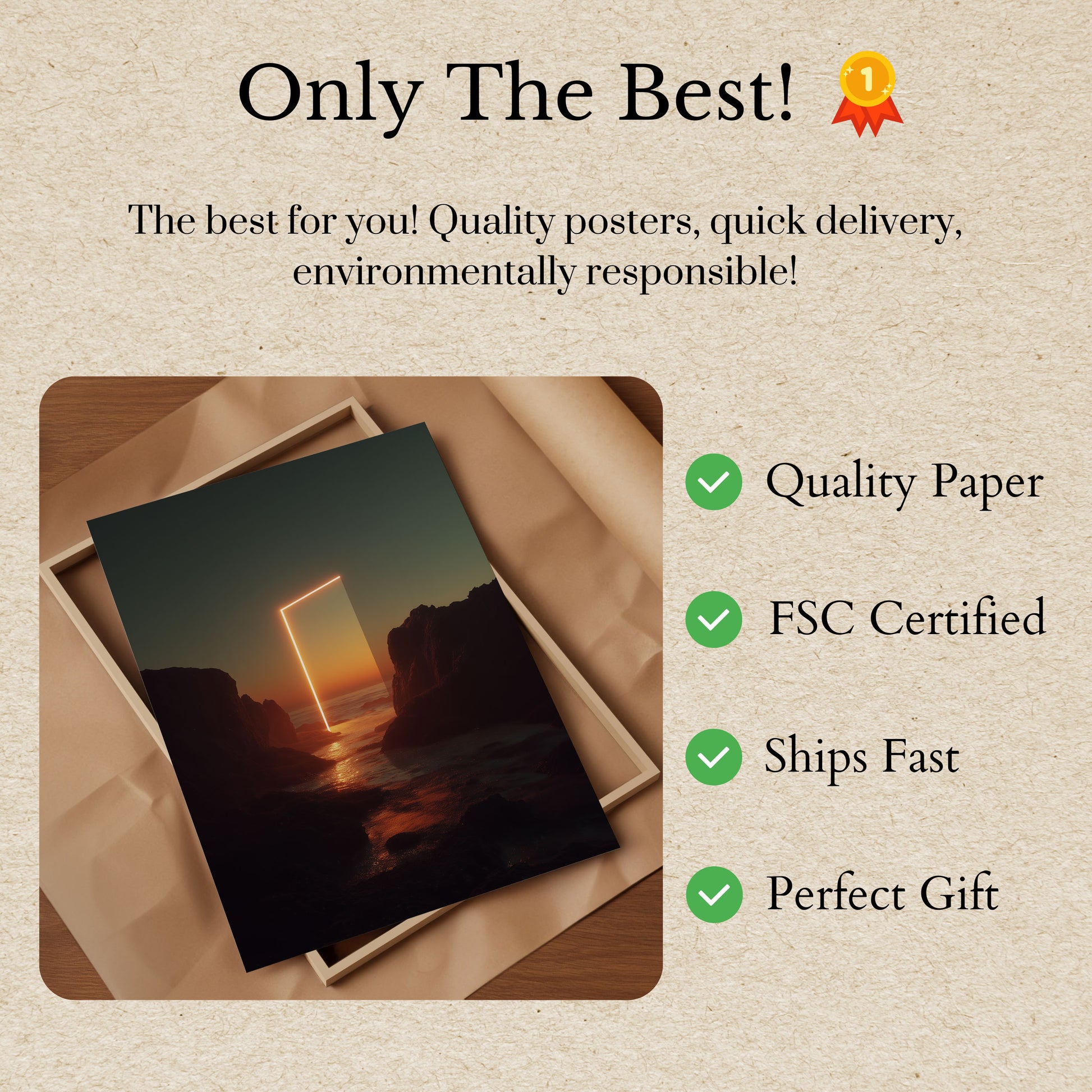 Todos nuestros pósters están hechos con papel grueso y premium de 170 g/m² que está certificado por FSC para garantizar sostenibilidad ecológica.