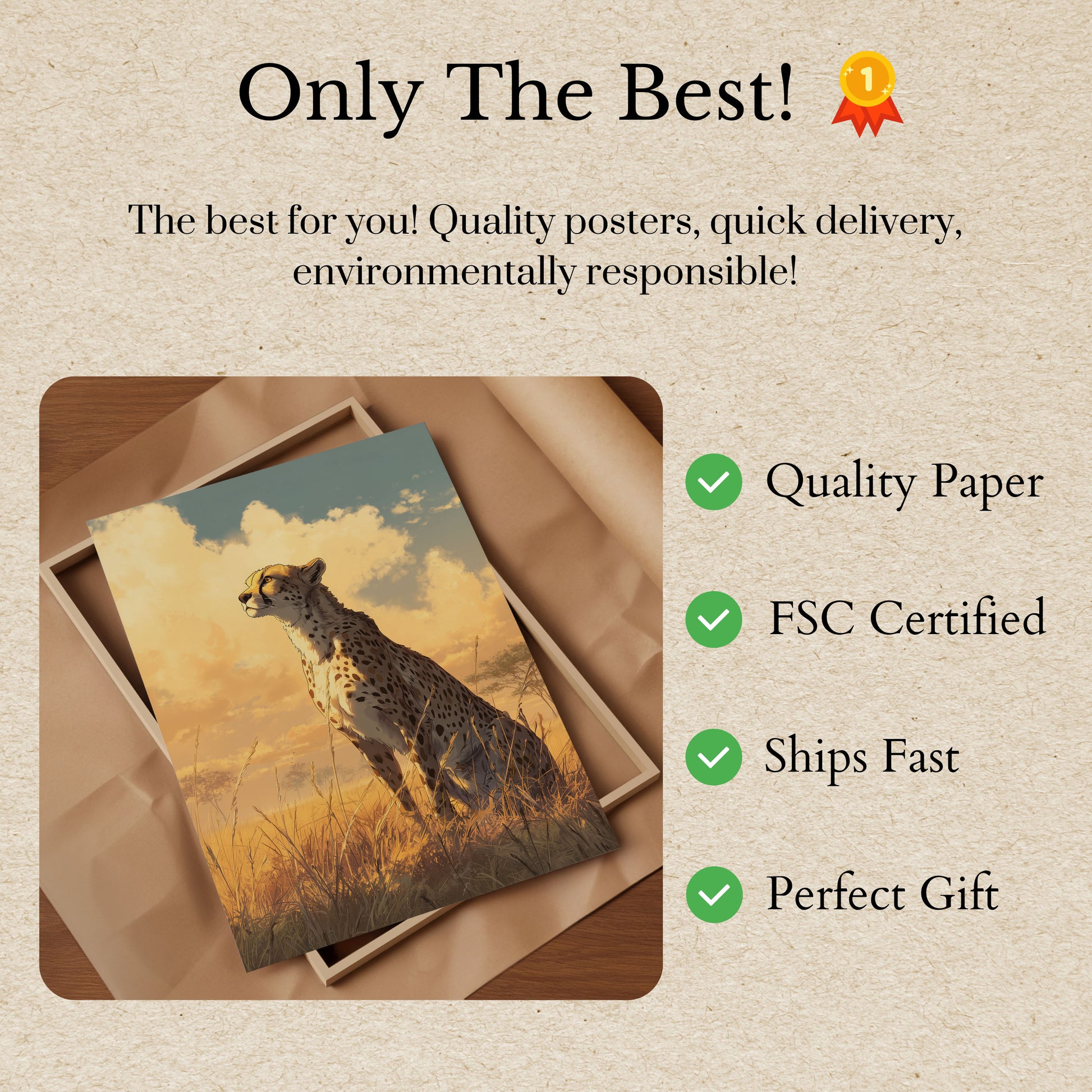 Todos nuestros carteles están elaborados con papel grueso de primera calidad de 170 g/m² con certificación FSC que garantiza su respeto al medio ambiente.