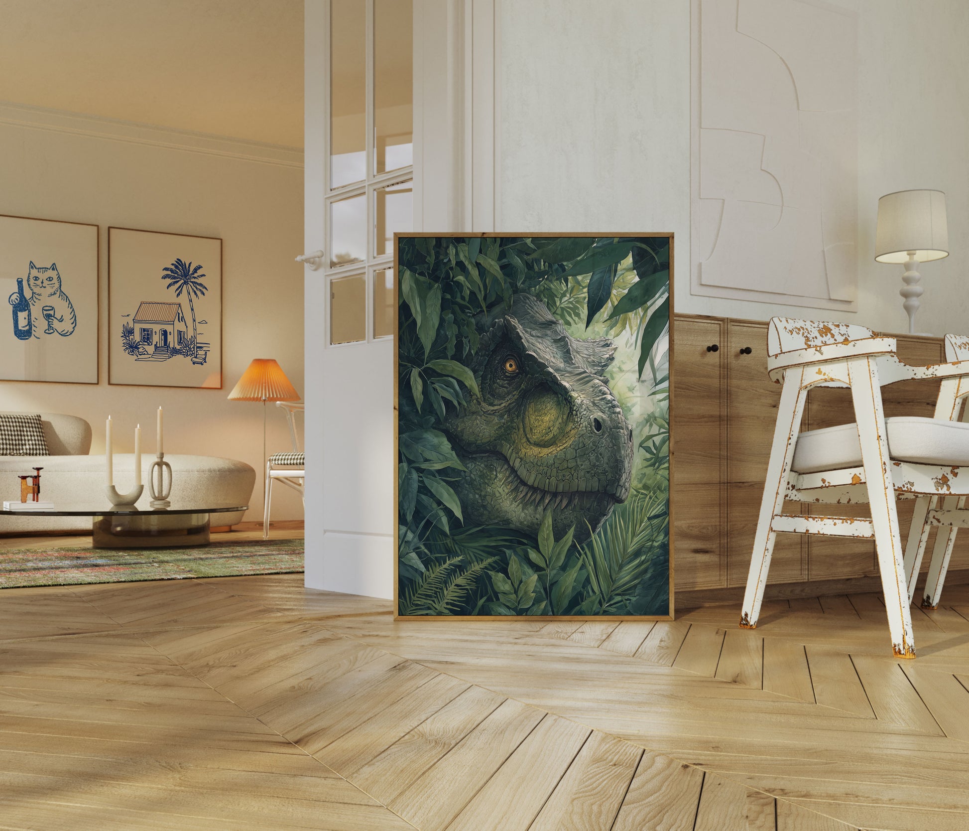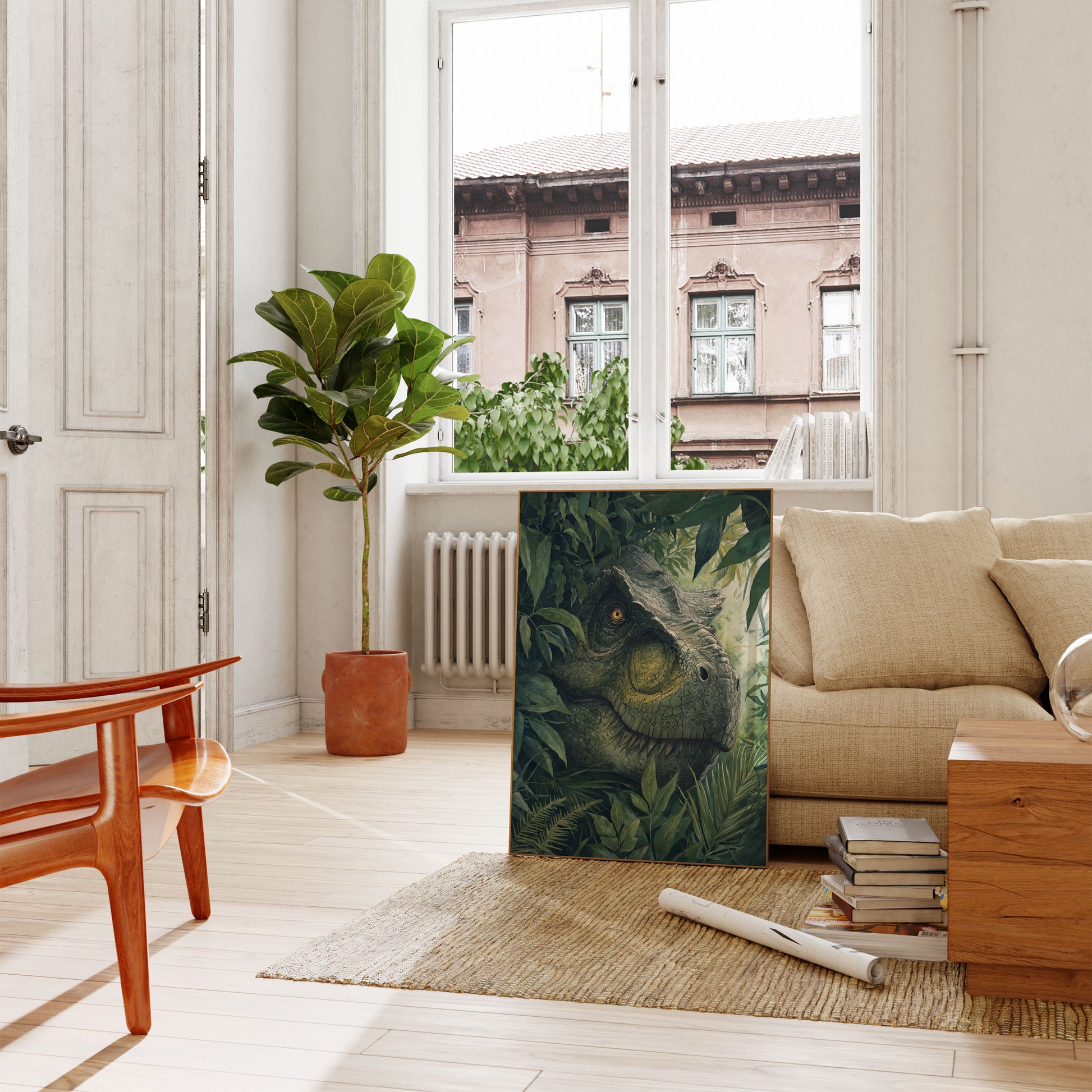 Póster del dinosaurio guardián de la jungla