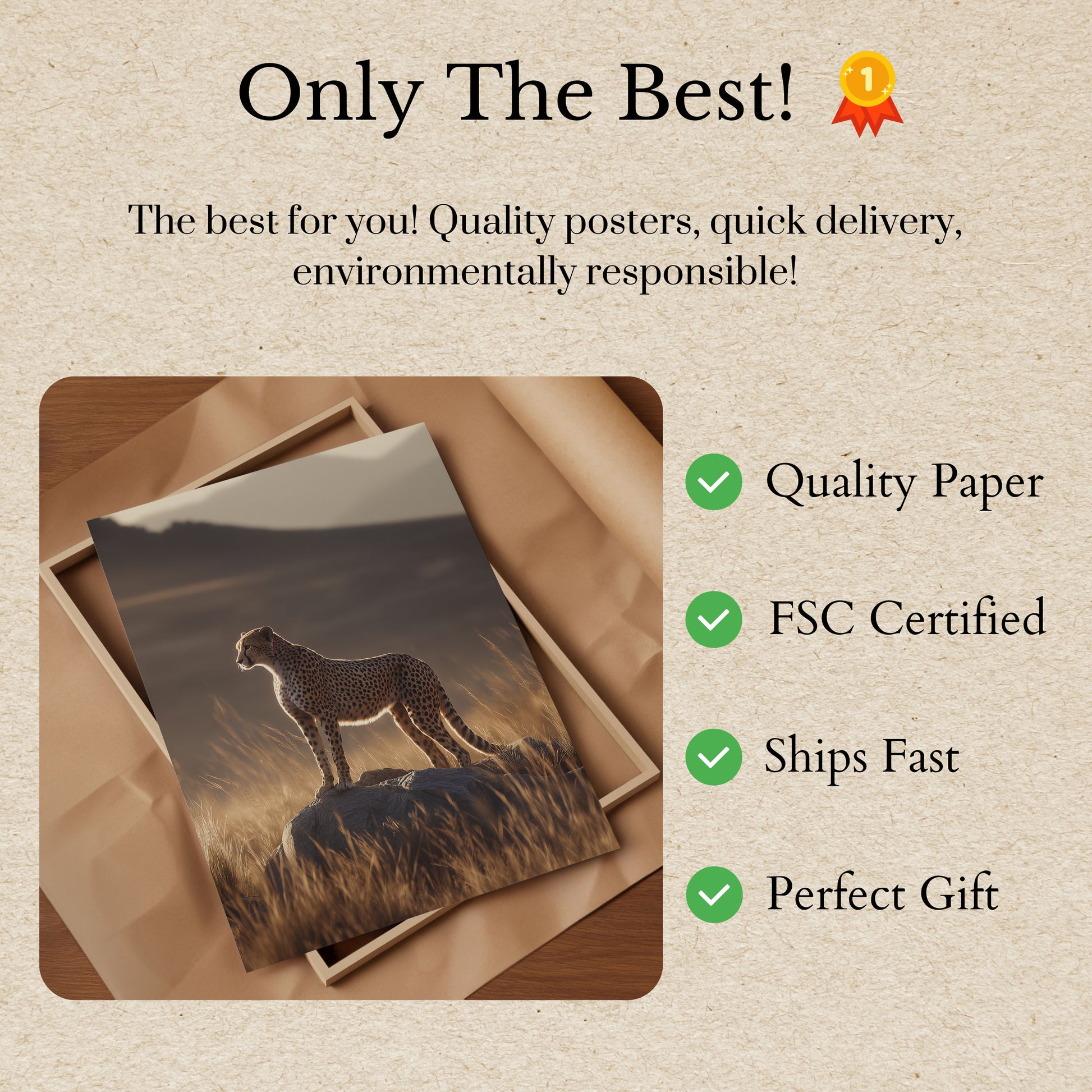 Todos nuestros carteles están elaborados con papel grueso de primera calidad de 170 g/m² con certificación FSC que garantiza su respeto al medio ambiente.