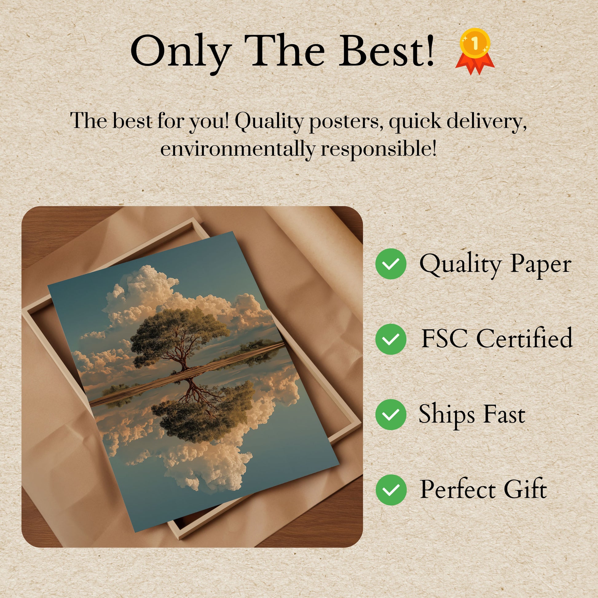 Todos nuestros carteles están elaborados con papel grueso de primera calidad de 170 g/m² con certificación FSC que garantiza su respeto al medio ambiente.