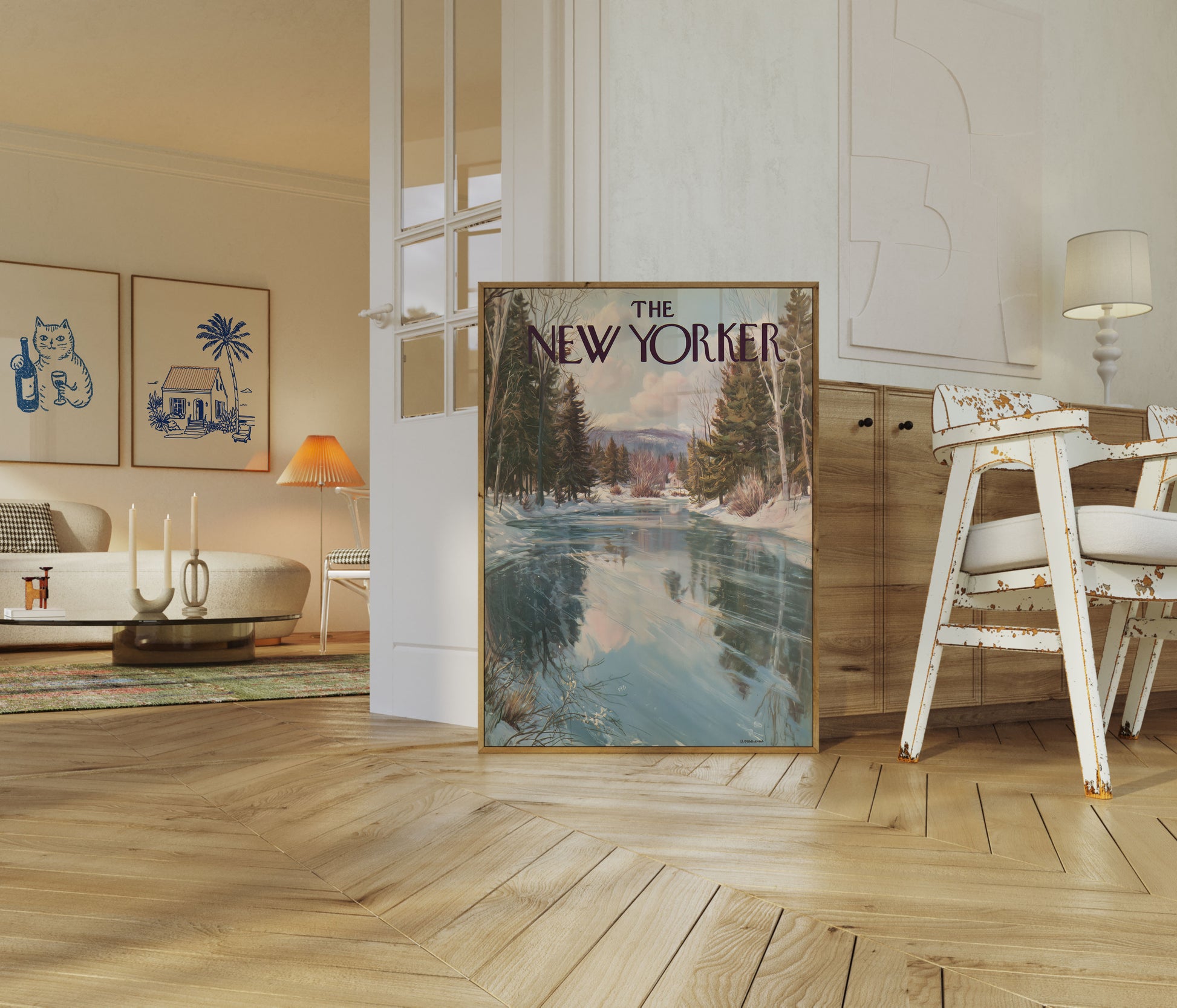 Serene Winter River New Yorker Poster