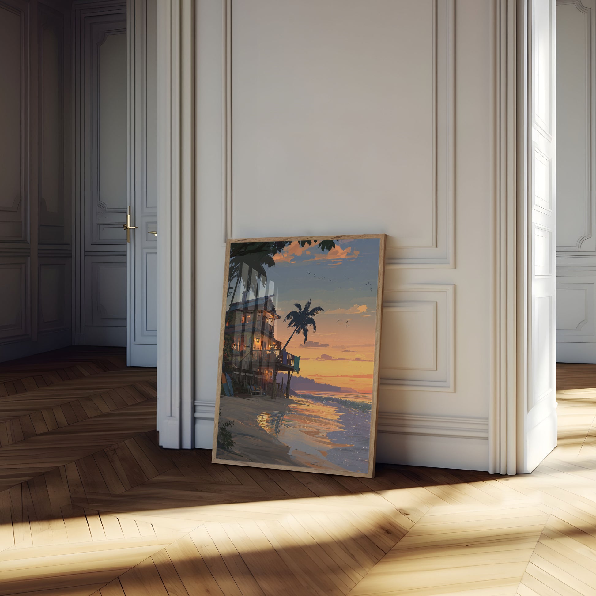 Poster de Casa de Playa al Atardecer