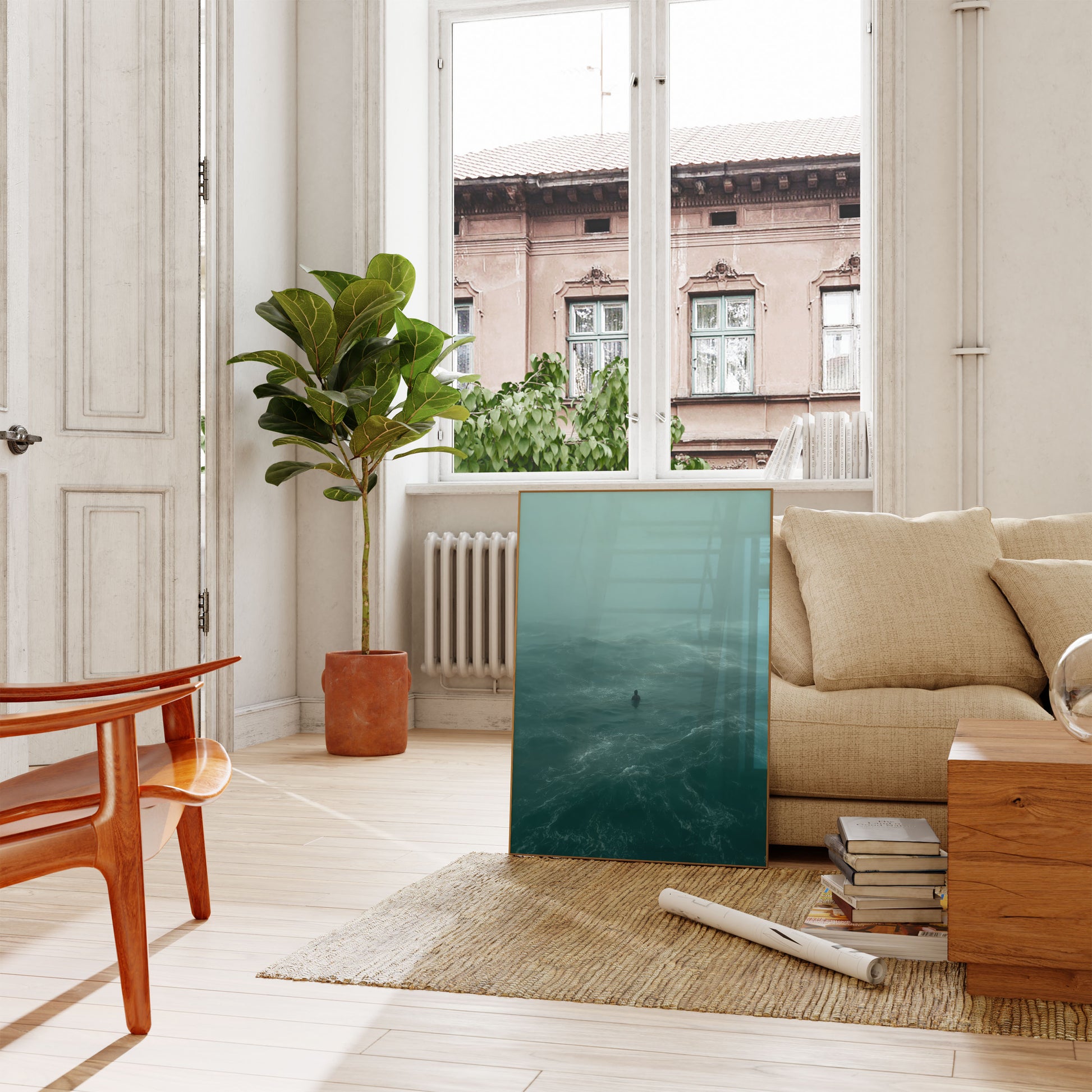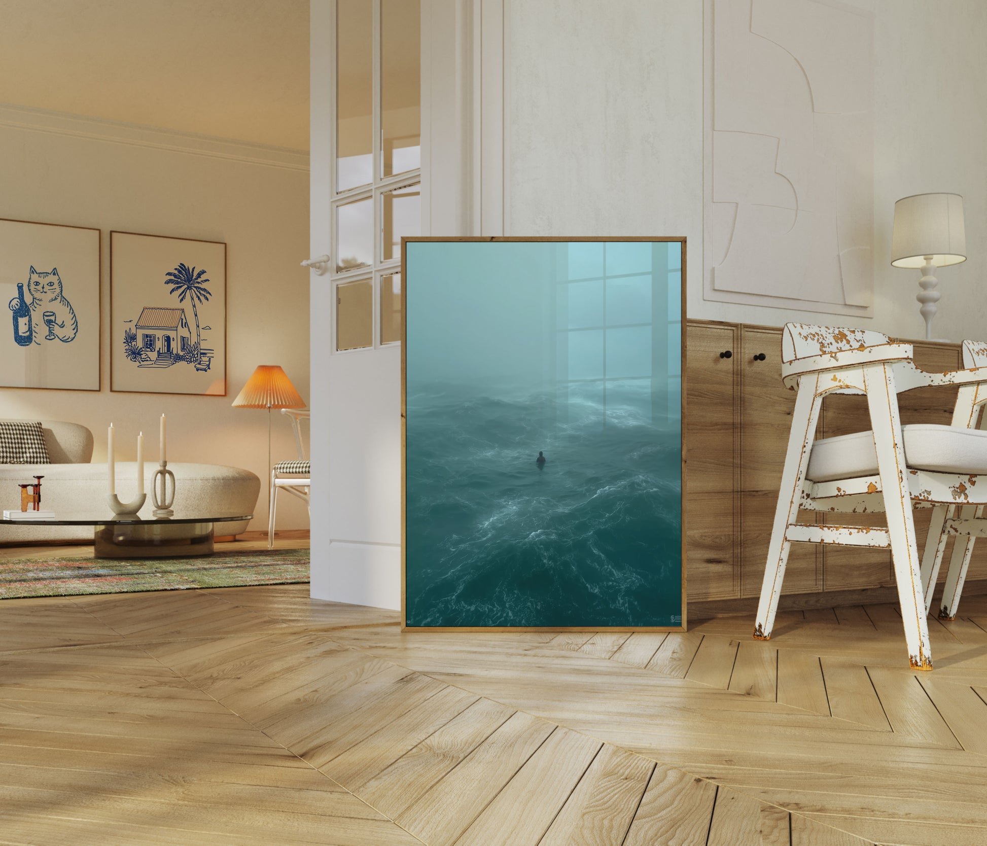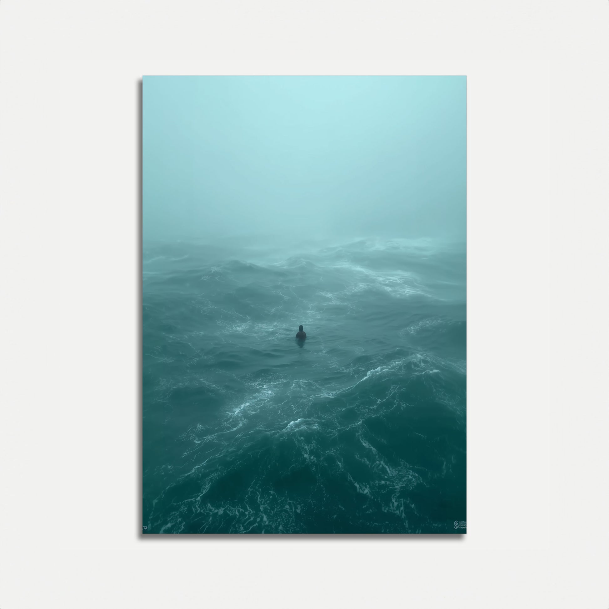 Esta imagen evocadora captura a un surfista solitario remando a través de aguas oceánicas envueltas en niebla y misterio, encarnando perfectamente el espíritu de aventura y soledad que atrae a las personas al mar. Los tonos suaves y apagados de azul y gris crean una calidad atmosférica, casi etérea, que transmite tanto el poder como el misterio del océano. La composición atrae a los espectadores a un momento contemplativo, donde el surfista parece pequeño frente a las olas vastas y texturizadas—un recordatorio de la grandeza de la naturaleza y nuestra conexión con ella. Perfecta para amantes de la playa, entusiastas de deportes acuáticos y cualquiera que encuentre paz en el ritmo de las olas.