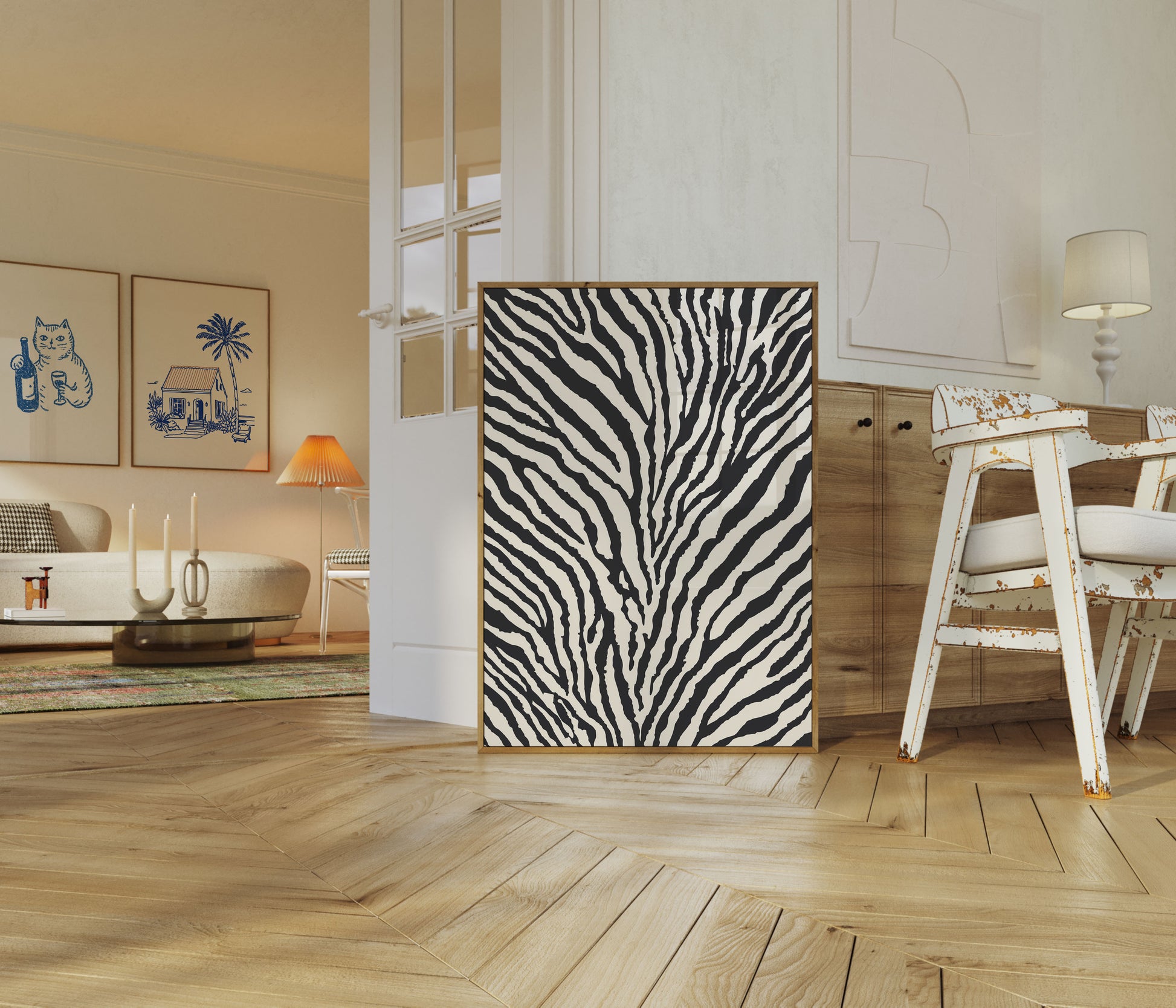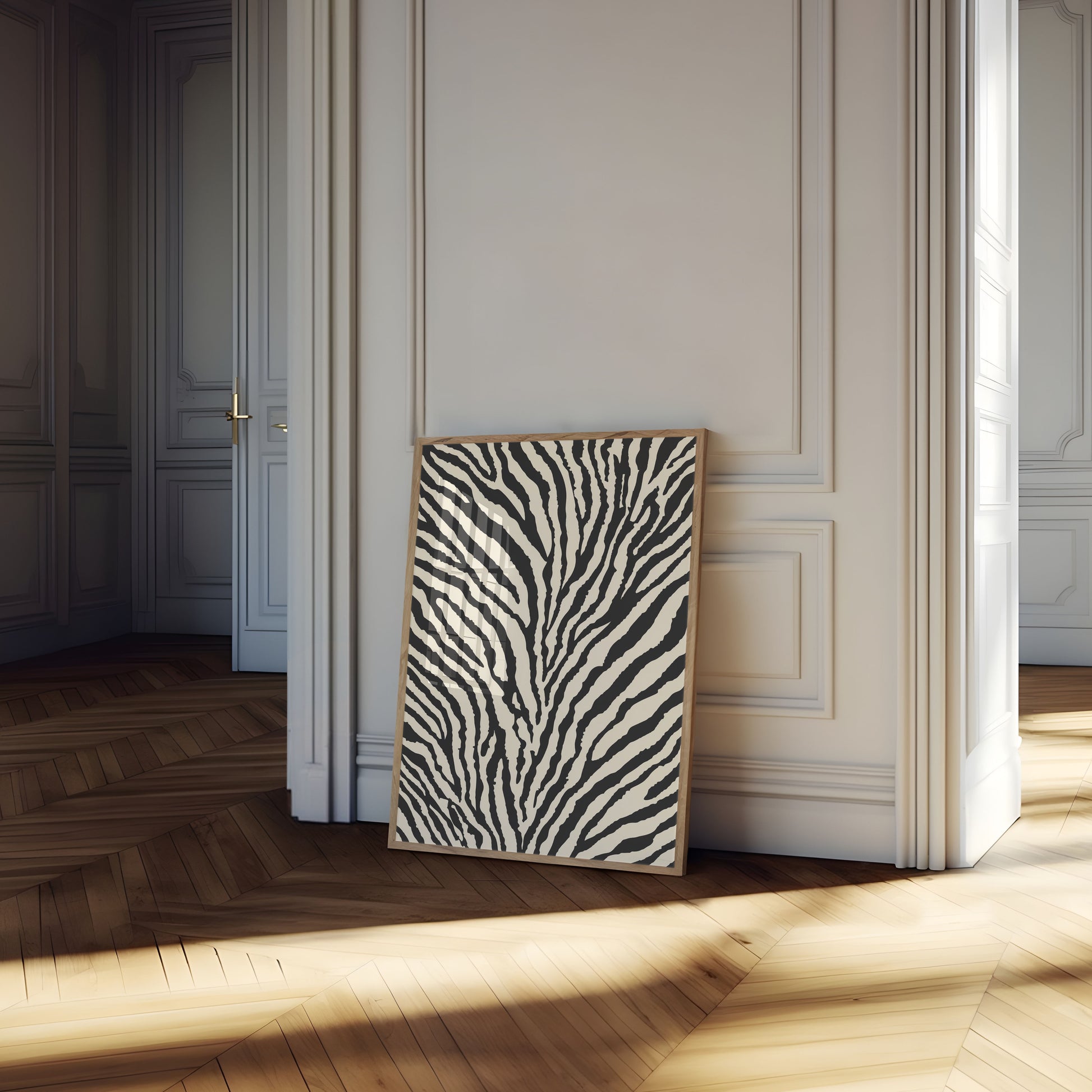 Sumérgete en el fascinante mundo del blanco y negro con este impresionante póster con estampado inspirado en cebras. Líneas orgánicas y fluidas crean un ritmo visual hipnótico que captura la esencia del diseño de camuflaje más emblemático de la vida silvestre. Cada curva y raya narra la historia de la perfecta simetría y la belleza salvaje de la naturaleza.