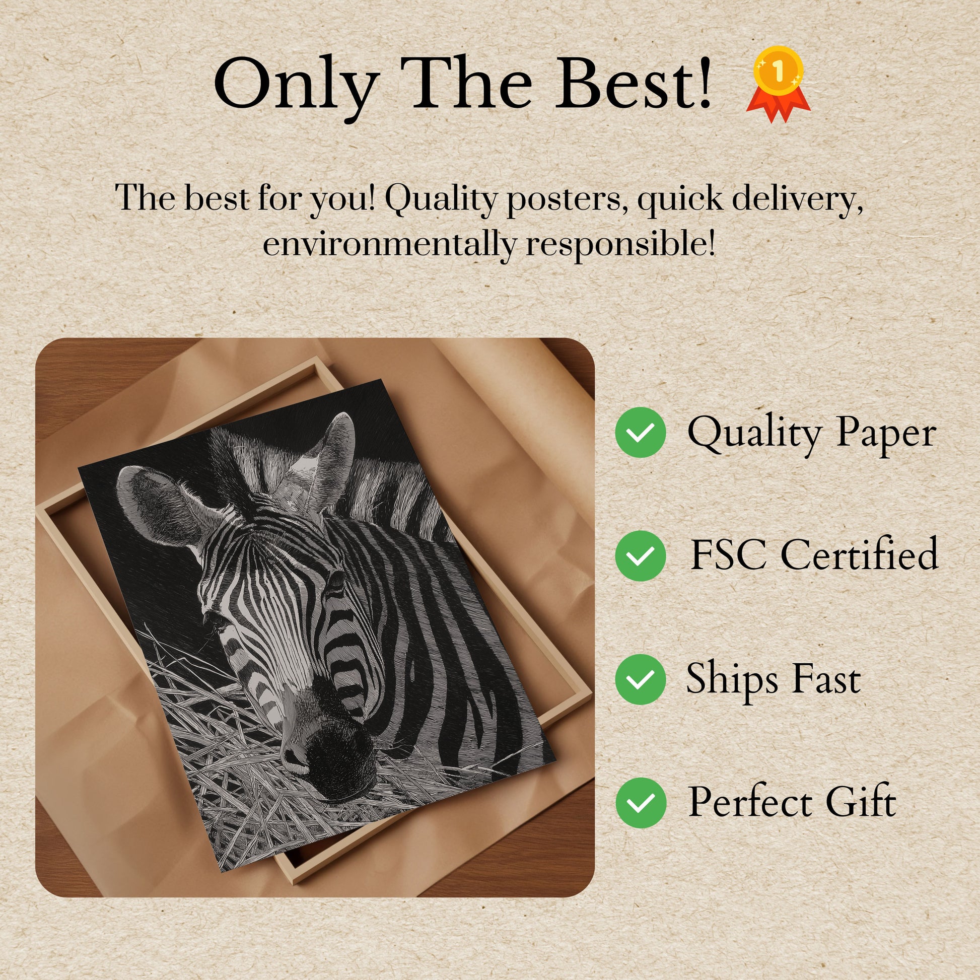 Sumérgete en la intensidad pura de este impactante retrato de cebra, donde un intrincado trazo en blanco y negro captura cada matiz de las distintivas rayas y el pelaje texturizado del animal. La obra combina magistralmente los patrones geométricos de la cebra con el delicado fondo de la pradera, creando una cautivadora narrativa visual de la elegante complejidad de la vida silvestre. Esta obra maestra en blanco y negro invita al espectador a una exploración íntima del diseño gráfico de la naturaleza.