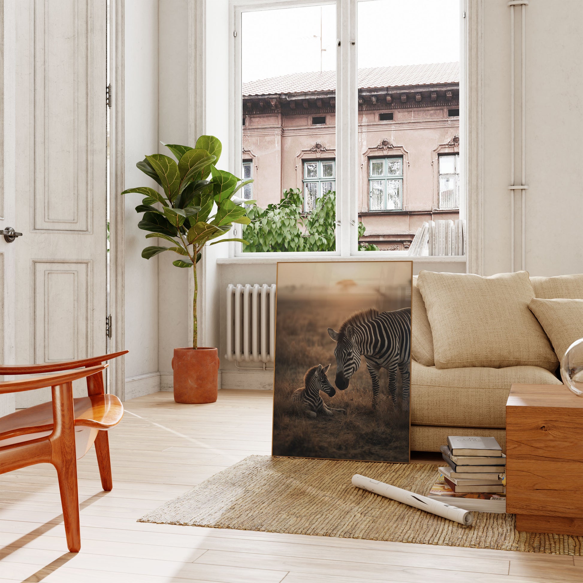 Póster de madre cebra y cría