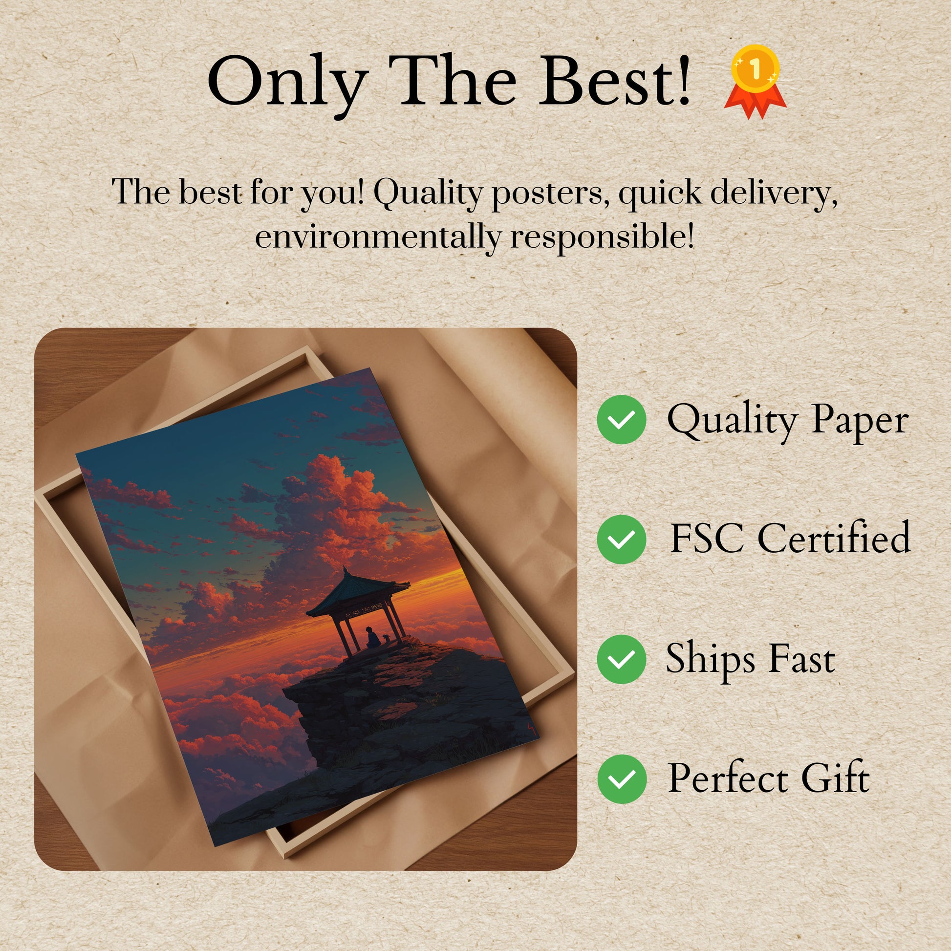 Todos nuestros carteles están elaborados con papel grueso de primera calidad de 170 g/m² con certificación FSC que garantiza su respeto al medio ambiente.