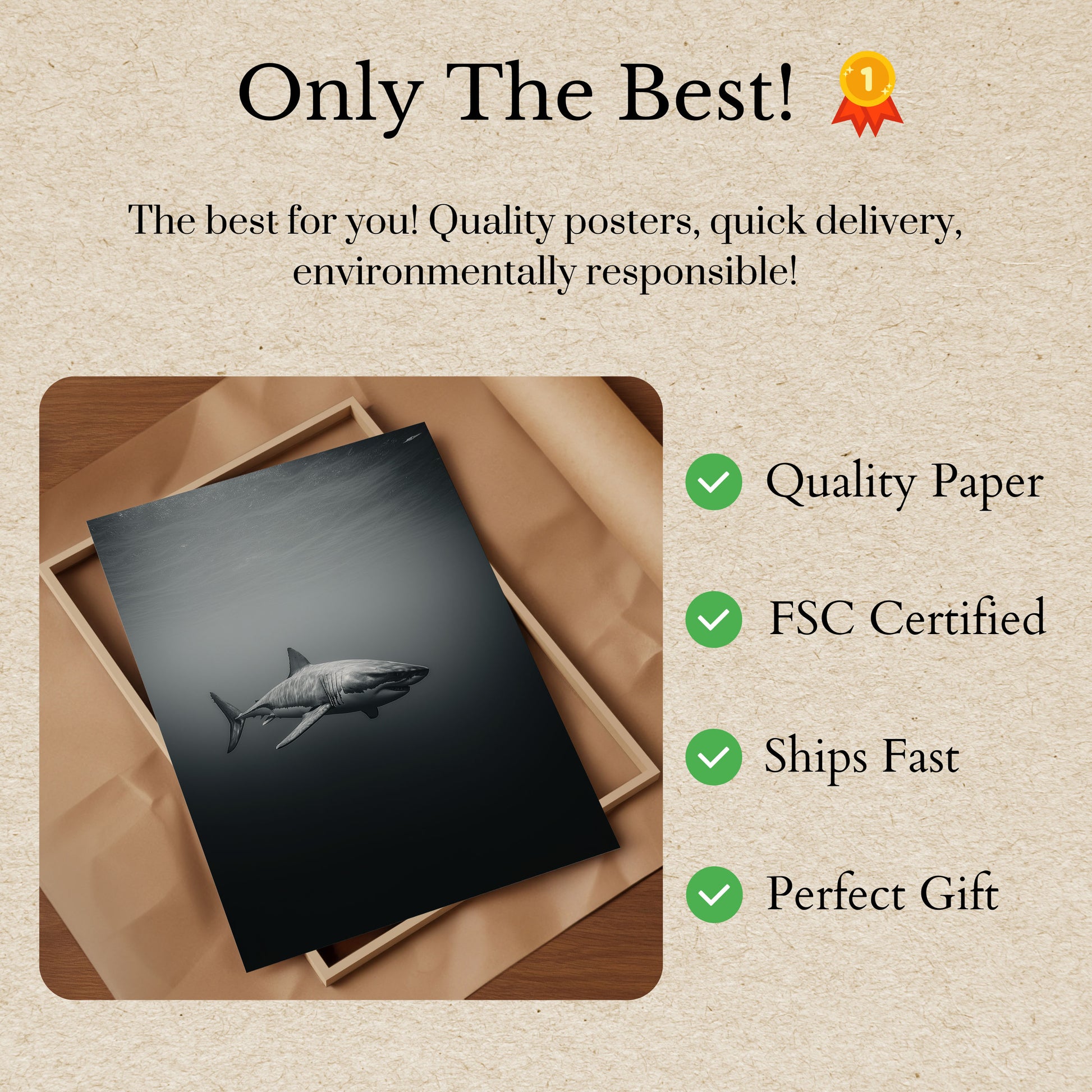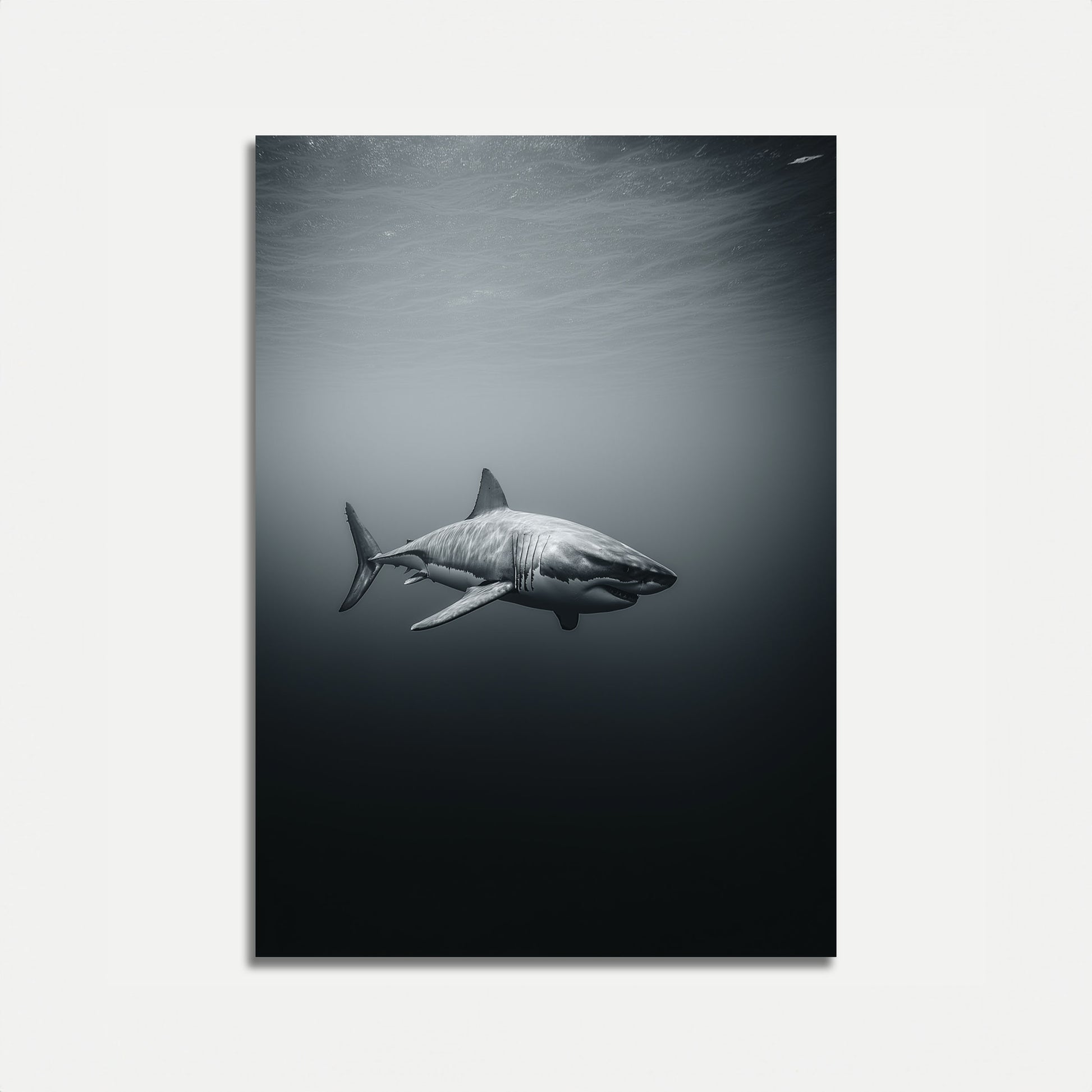 Dive into the haunting depths of the marine world with this stunning black and white shark portrait. Captured in ethereal grayscale, the great white glides through misty underwater shadows, embodying power, grace, and primal elegance. The image's minimalist palette and dramatic lighting create an intense, mesmerizing atmosphere that speaks to the raw beauty of one of nature's most legendary creatures.