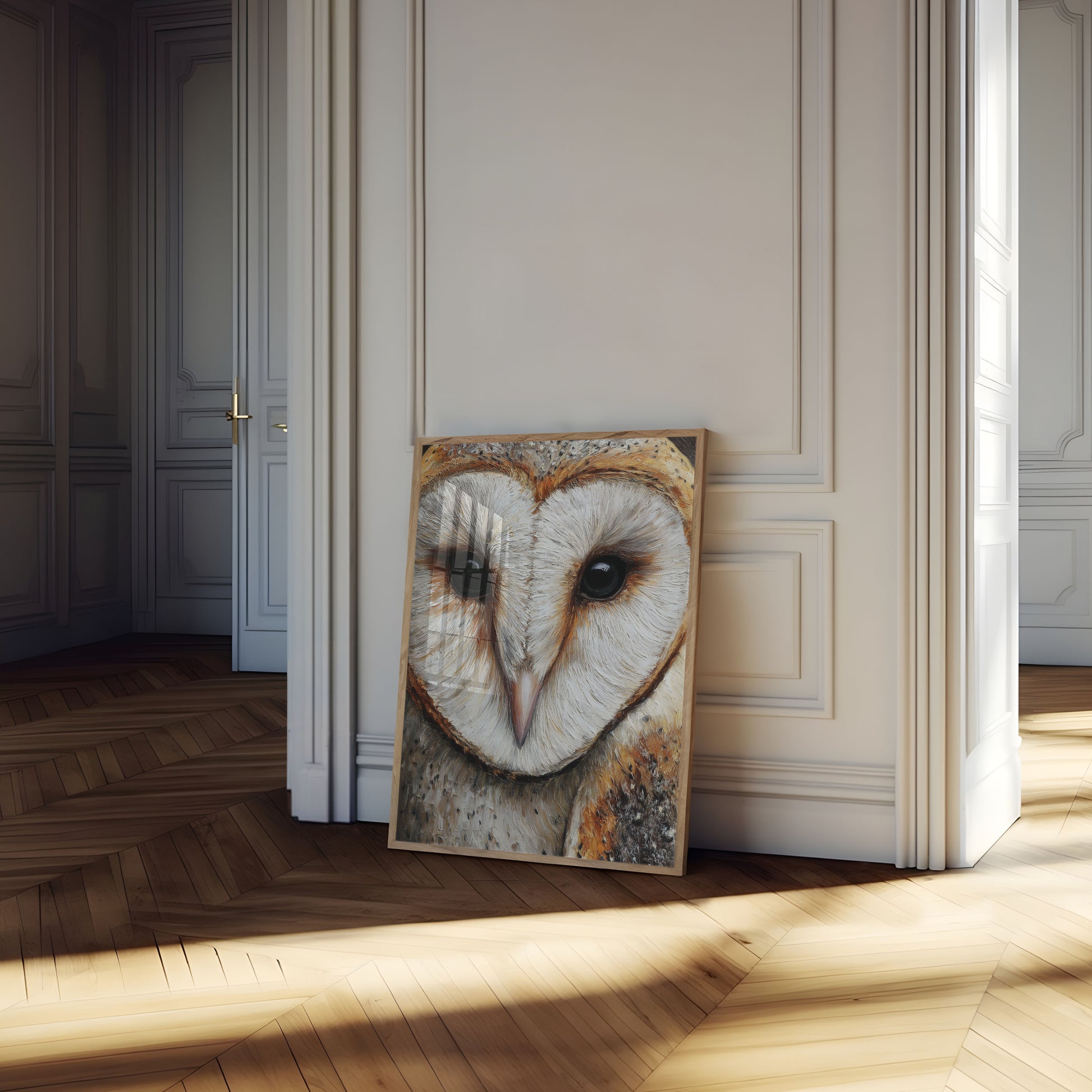 Ce magnifique portrait de Chouette effraie capture la beauté envoûtante de l'un des oiseaux de proie les plus captivants de la nature. Avec son visage distinctif en forme de cœur rendu dans un détail exquis, ses yeux perçants d'un noir profond et son plumage complexe dans les tons chauds de brun et de blanc crémeux, cette œuvre vous attire dans le regard mystérieux de la chouette. Le travail de pinceau habile de l'artiste donne vie au disque facial délicat et aux plumes tachetées, créant une sensation d'intensité tranquille et de merveille forestière qui transformera n'importe quel espace en un sanctuaire d'élégance naturelle.