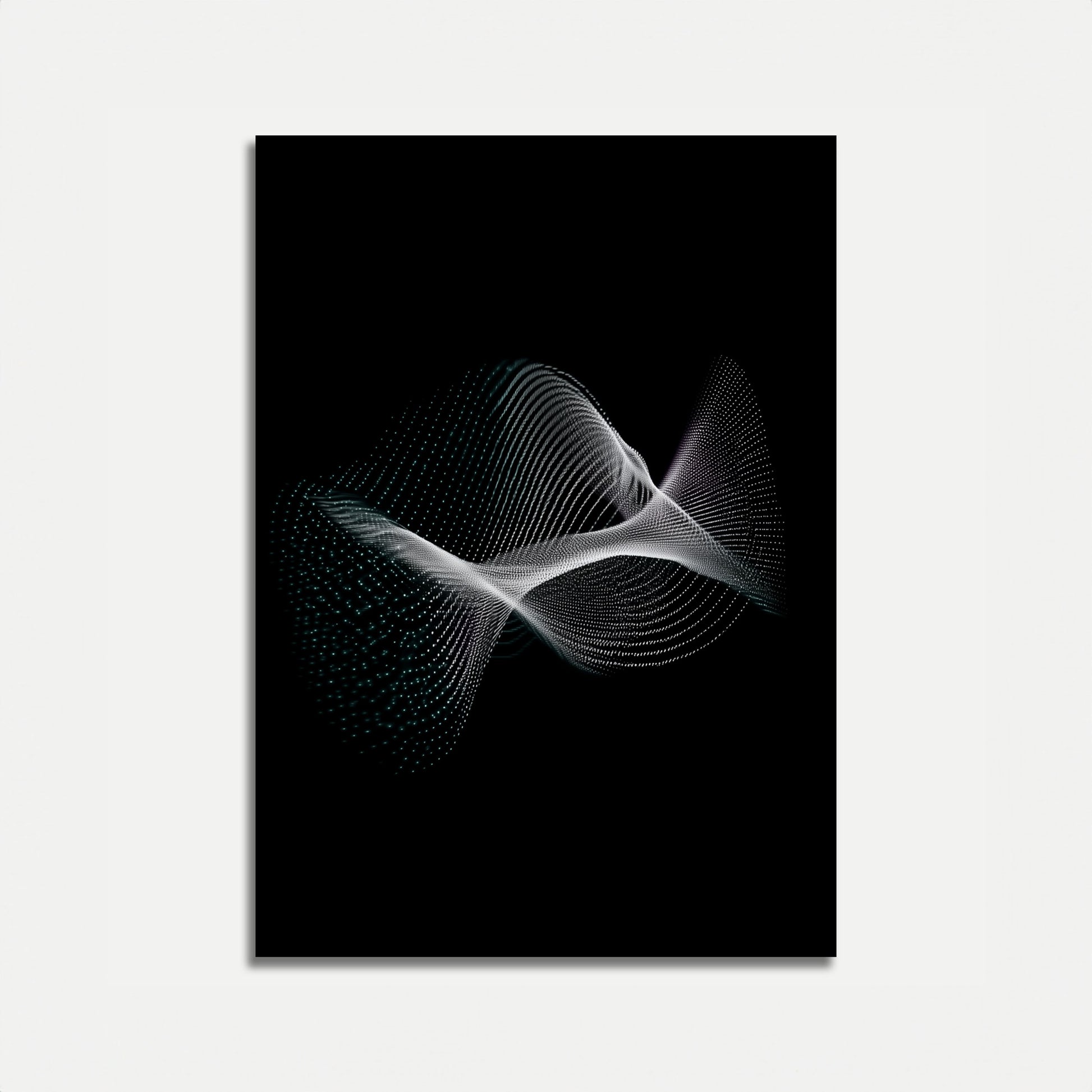 Immerse yourself in the mesmerizing world of digital artistry with this stunning abstract visualization. Delicate white particles dance and intertwine against a deep black background, creating a fluid, wave-like motion that seems to pulse with ethereal energy. The intricate dot matrix forms a dynamic, three-dimensional landscape that captures the essence of movement and technological elegance.