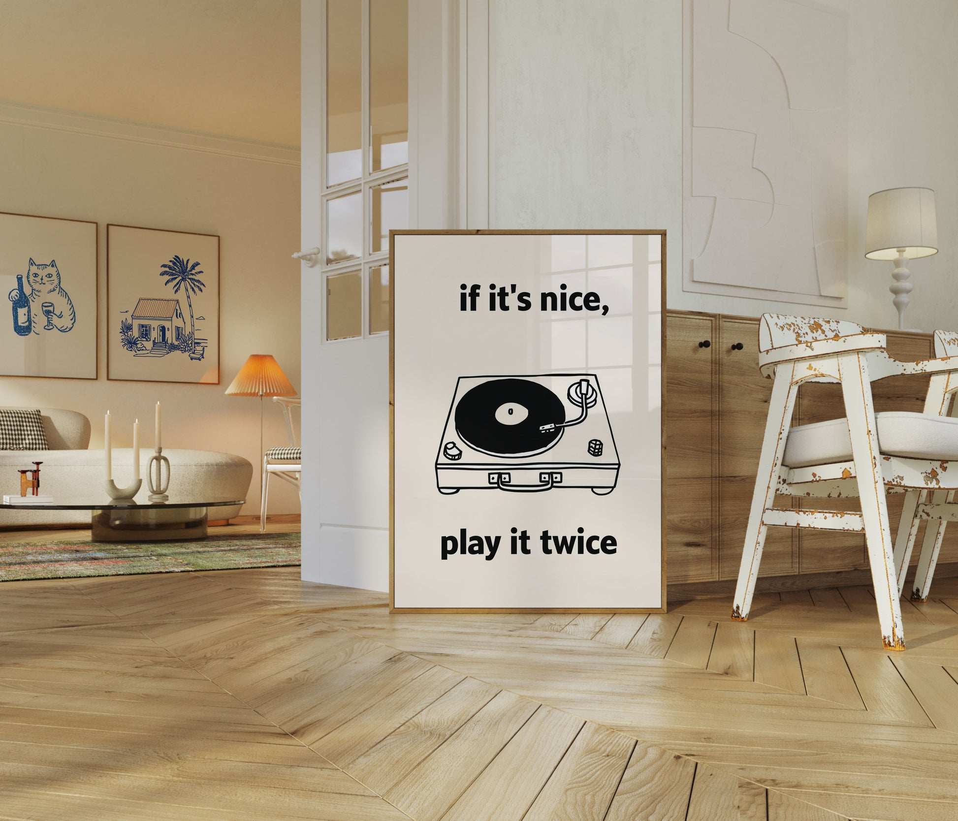 Celebrate the pure joy of music with this minimalist turntable poster that speaks to audiophiles and vintage music enthusiasts. The clean, graphic design captures the essence of analog sound with its simple black and white illustration of a classic record player, inviting viewers to appreciate the timeless ritual of playing a favorite album.