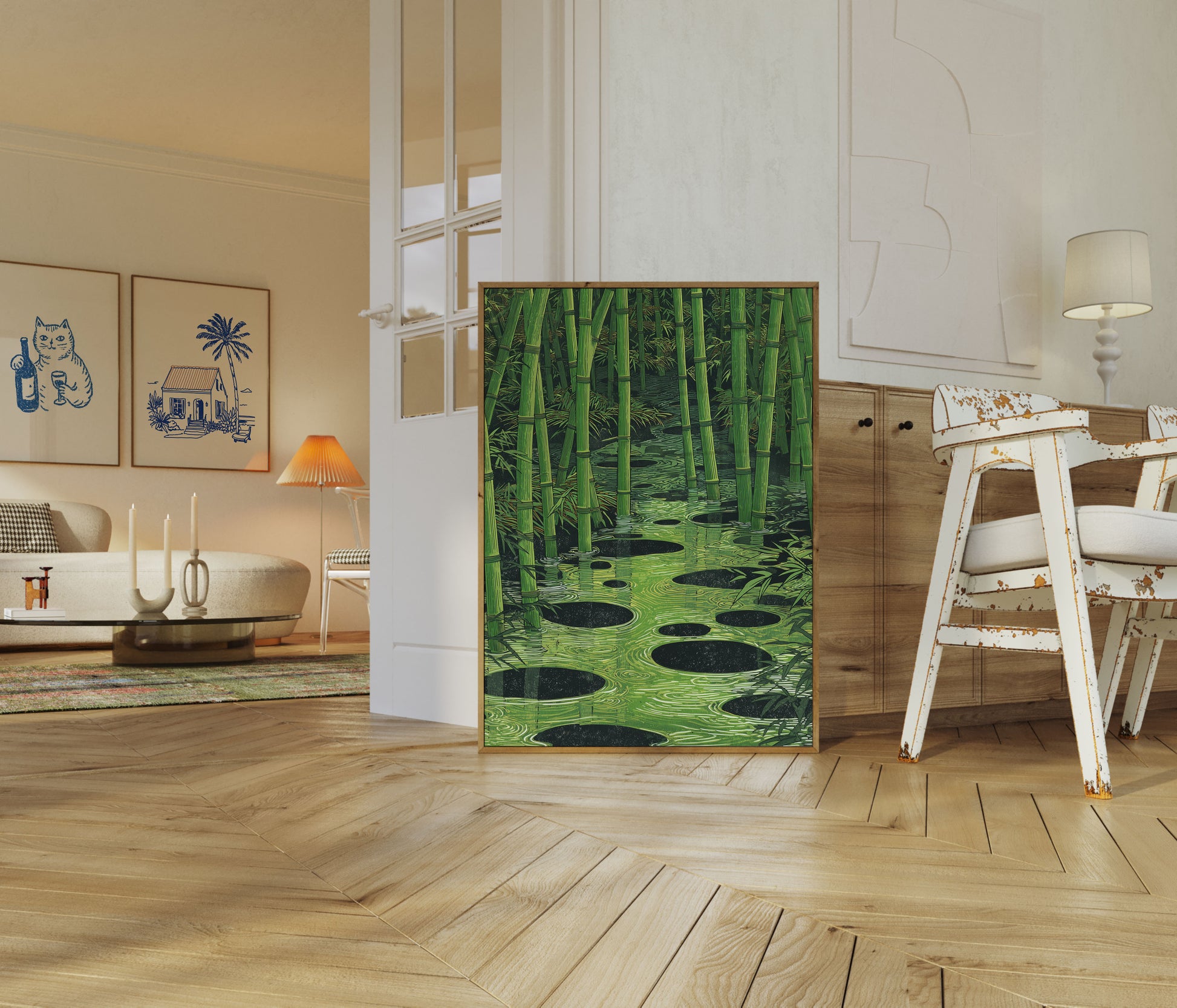 Affiche Reflet d'Eau de Forêt de Bambou