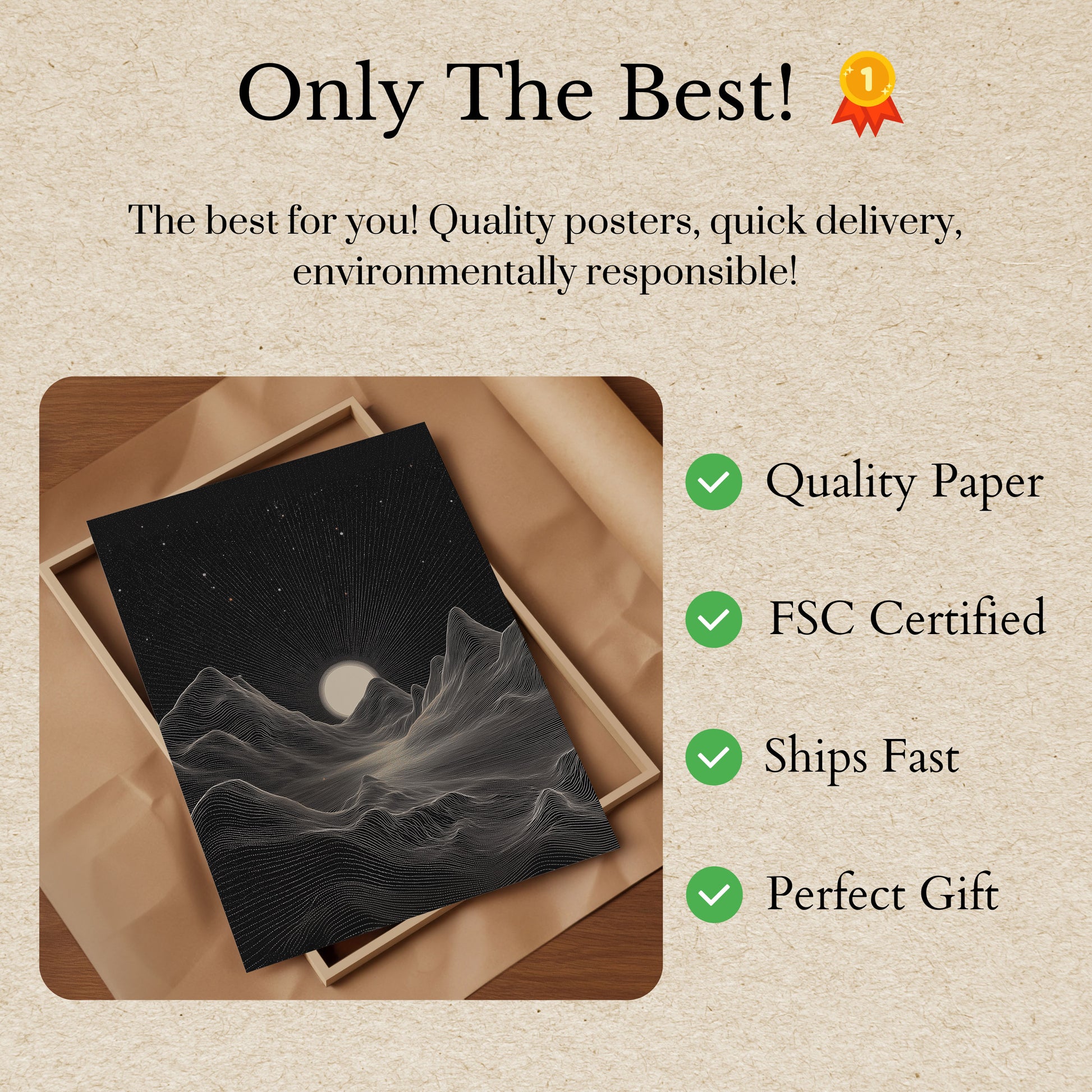 Tous nos posters sont réalisés avec du papier épais et premium de 170 g/m², certifié FSC pour une assurance éco-responsable.