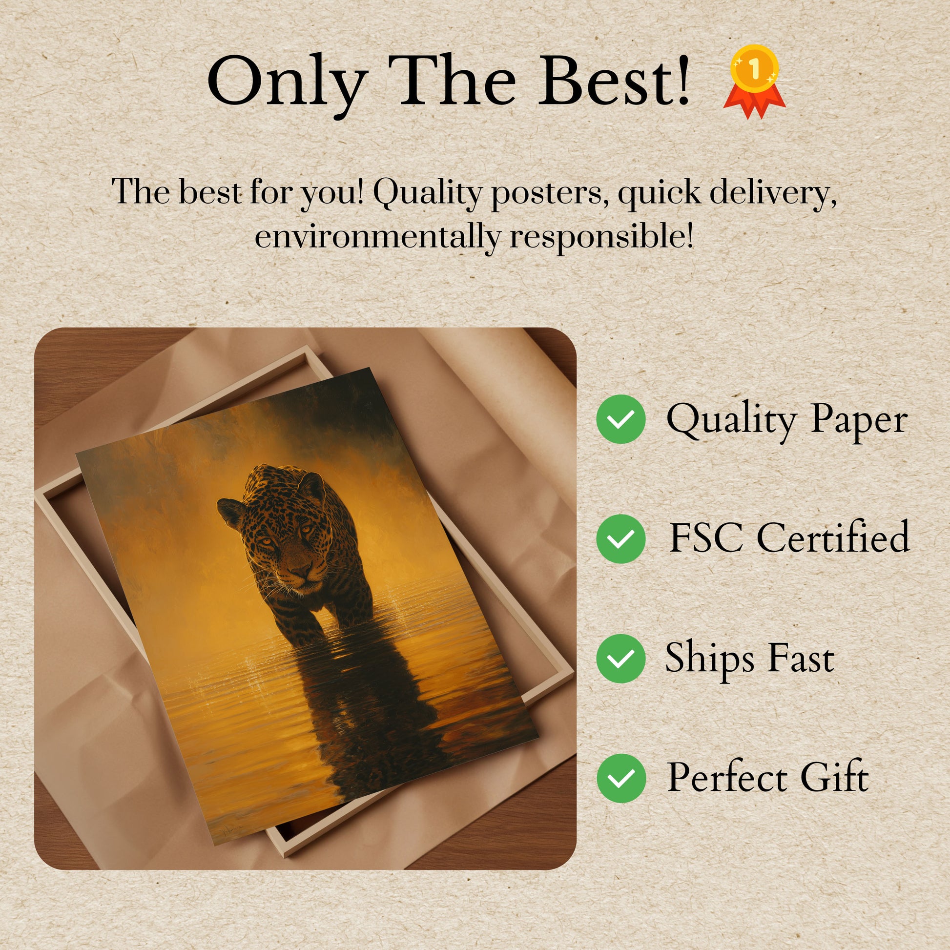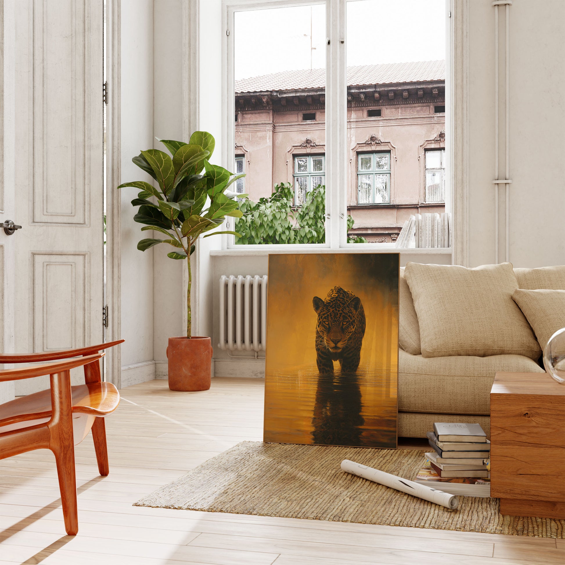 Affiche Jaguar Marchant dans l'Eau Dorée