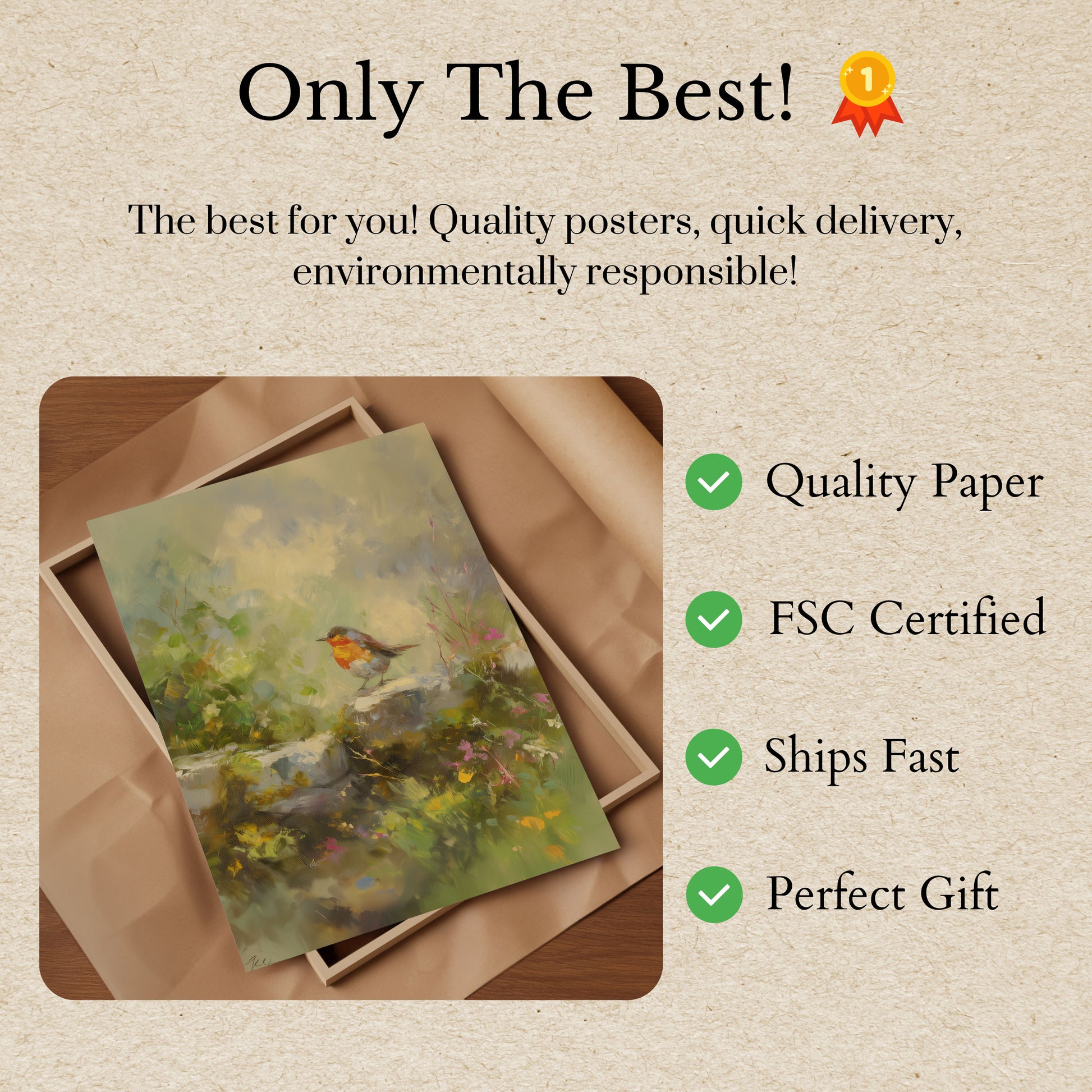 Tous nos affiches sont fabriquées avec du papier premium épais de 170 g/m² certifié FSC pour une assurance respectueuse de l'environnement.