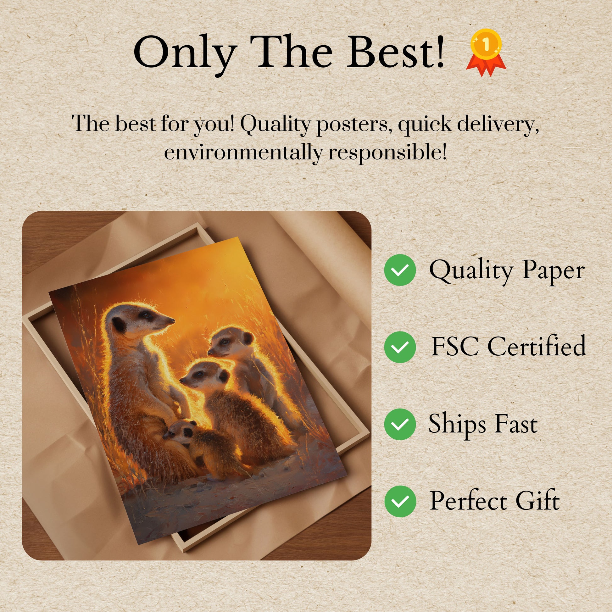 Affiche Famille de Suricates au Coucher de Soleil Doré