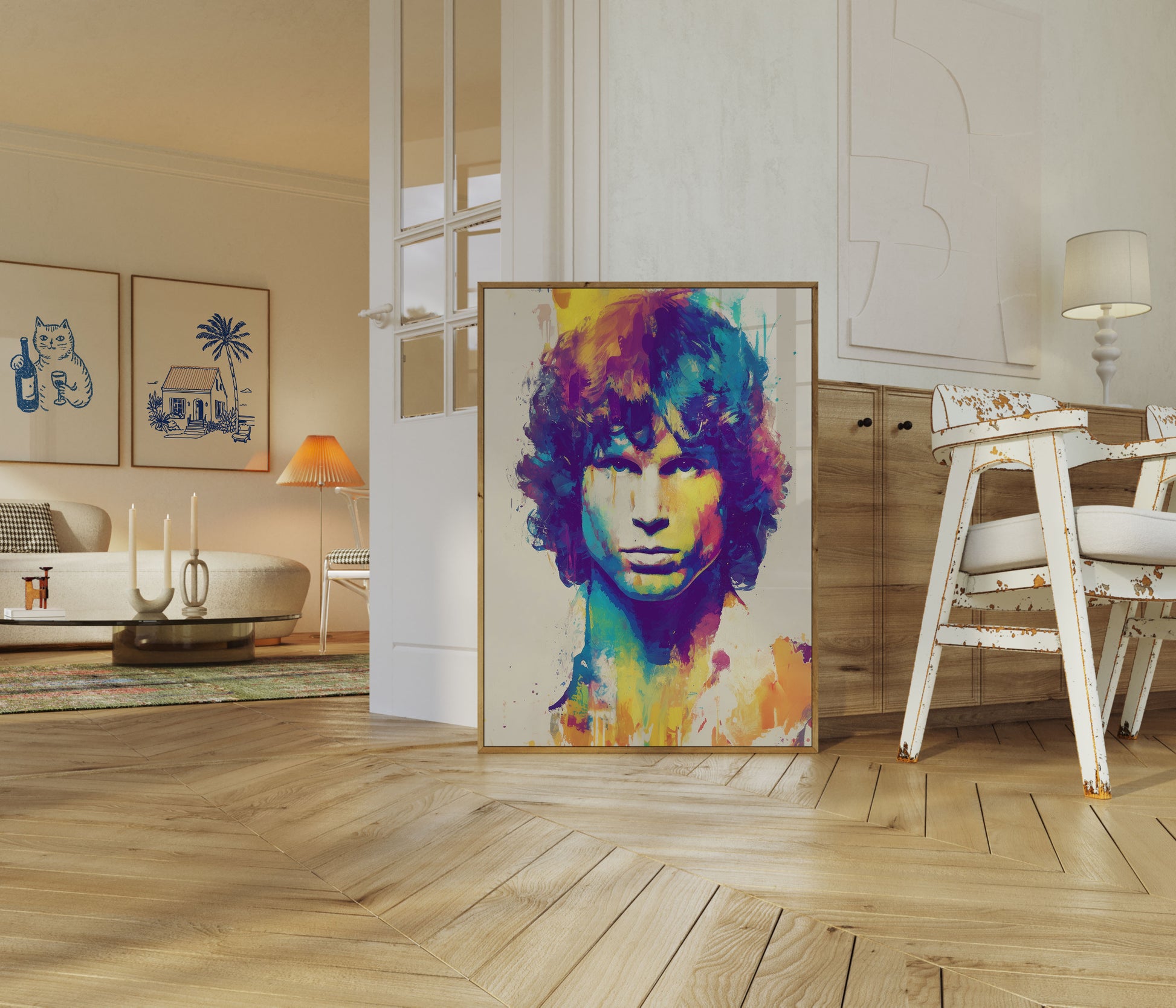 Kunstzinnige Poster van Jim Morrison in Levendige Kleuren
