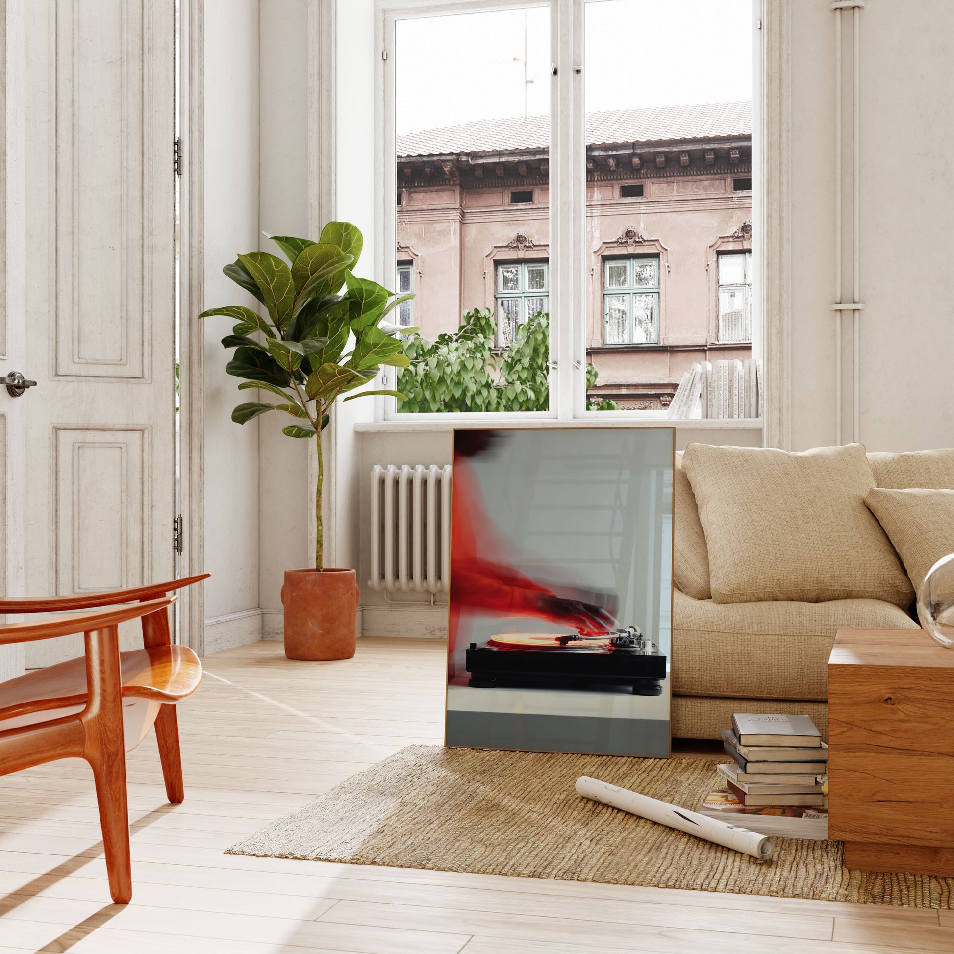 Vang de elektriserende essentie van muziek met deze dynamische platenspeler-poster die beweging, technologie en artistieke expressie combineert. De afbeelding toont een klassieke platenspeler met een hypnotiserende rode waas van beweging, die de pure energie en passie van geluid symboliseert. Gedurfd, scherp en visueel verbluffend is deze poster een must-have voor muziekliefhebbers, audiofiele enthousiastelingen en designliefhebbers die de tijdloze schoonheid van analoog geluid waarderen.