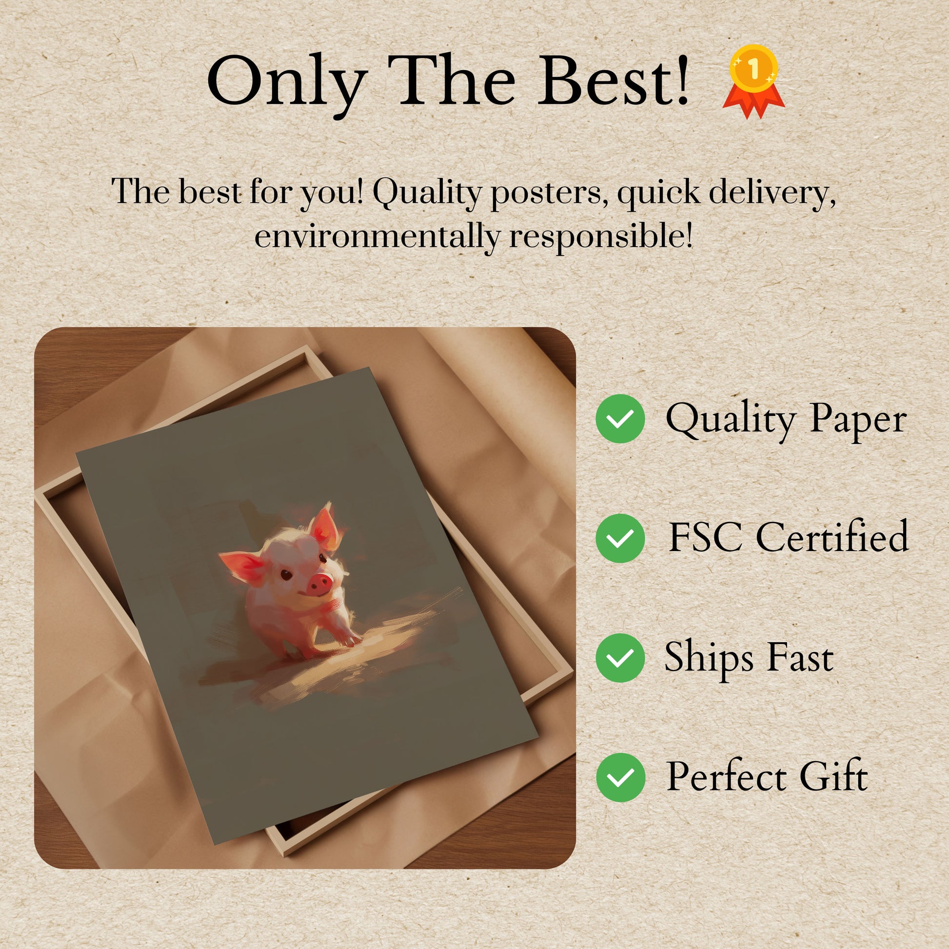 Maak kennis met het schattigste varkentje dat je ooit hebt gezien, stralend in zachte roze tinten vol onweerstaanbare charme. Deze digitale kunstprint vangt een baby-varken op terwijl het staat met een vertederende uitdrukking, ondergedompeld in warm, zacht licht dat zijn oren en snuit een heerlijke rozige gloed geeft. De minimalistische achtergrond laat het varkentje alle aandacht krijgen, waardoor er een emotionele connectie ontstaat die harten zal smelten en een glimlach op ieders gezicht zal toveren.