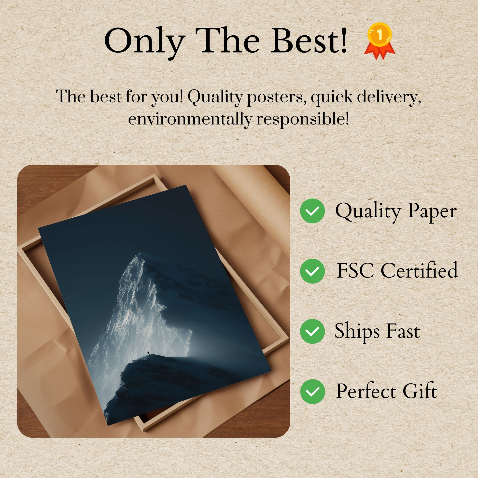 Al onze posters worden gemaakt met dik, premium 170 g/m² papier dat FSC-gecertificeerd is voor eco-vriendelijke zekerheid.