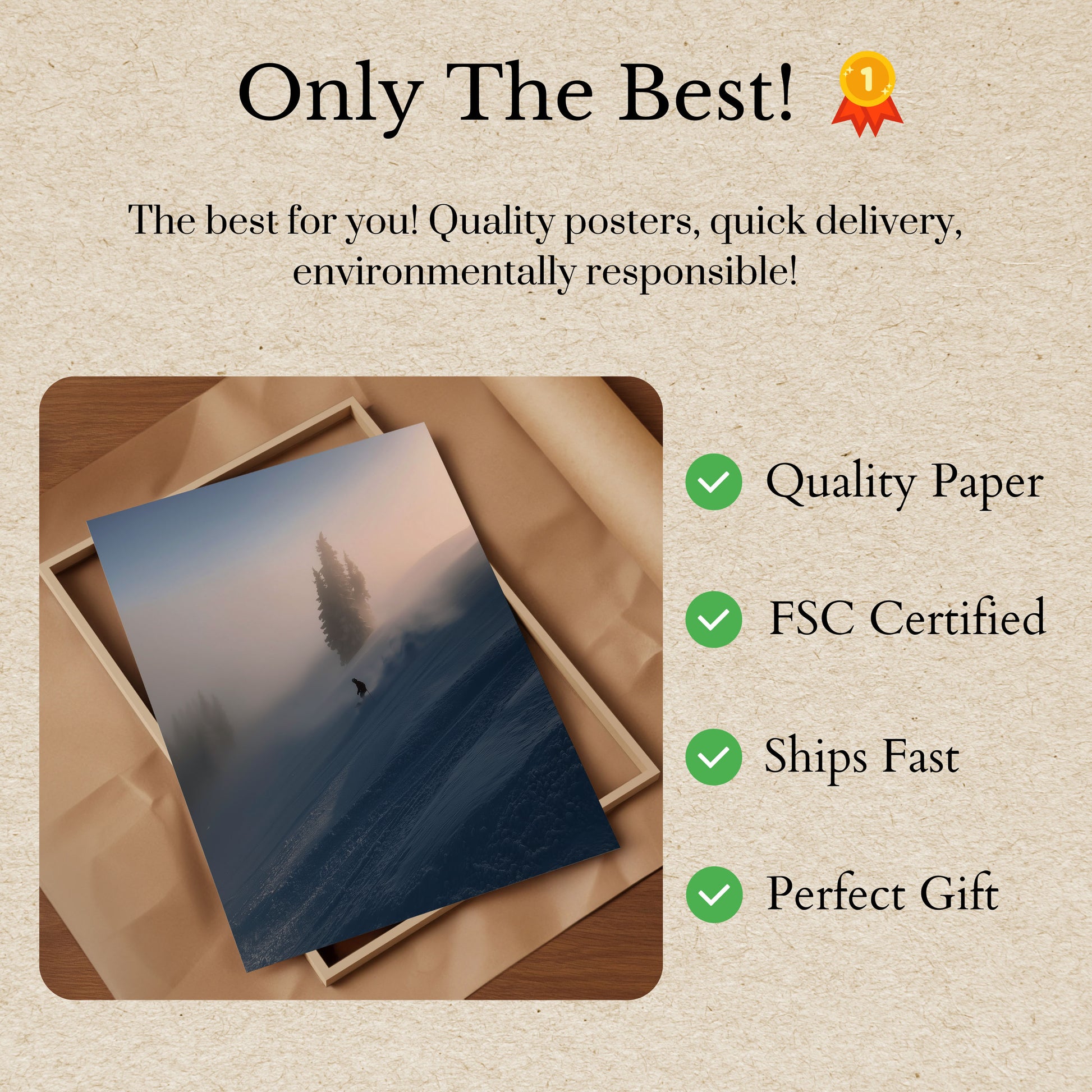Alle våre plakater er laget med tykt, premiumkvalitet 170 g/m² papir som er FSC-sertifisert for miljøvennlig sikkerhet.