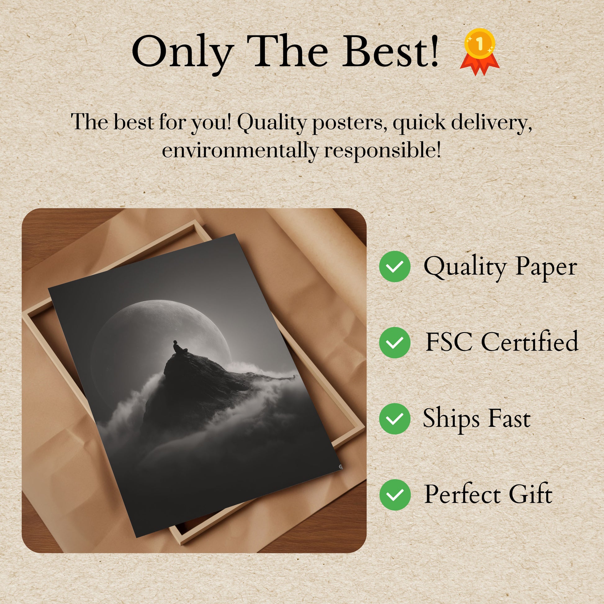 Alle våre plakater er laget av tykk, premium 170 g/m² papir som er FSC-sertifisert for miljøvennlig garanti.