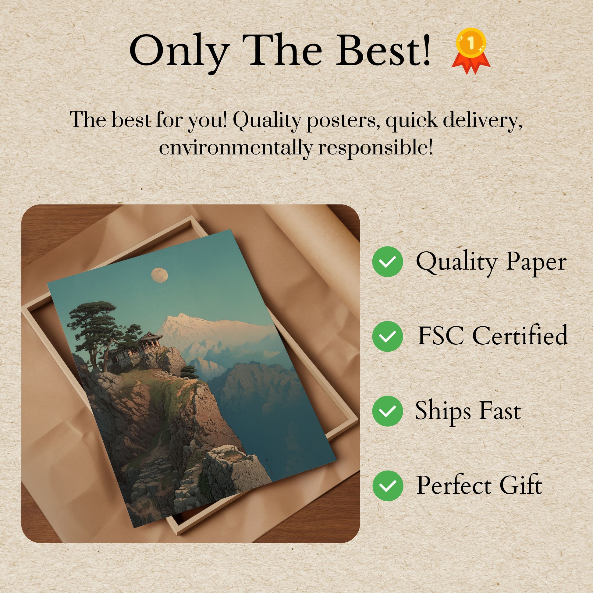 Alle våre plakater er laget med tykt, premium 170 g/m² papir som er FSC-sertifisert for miljøvennlig garanti.