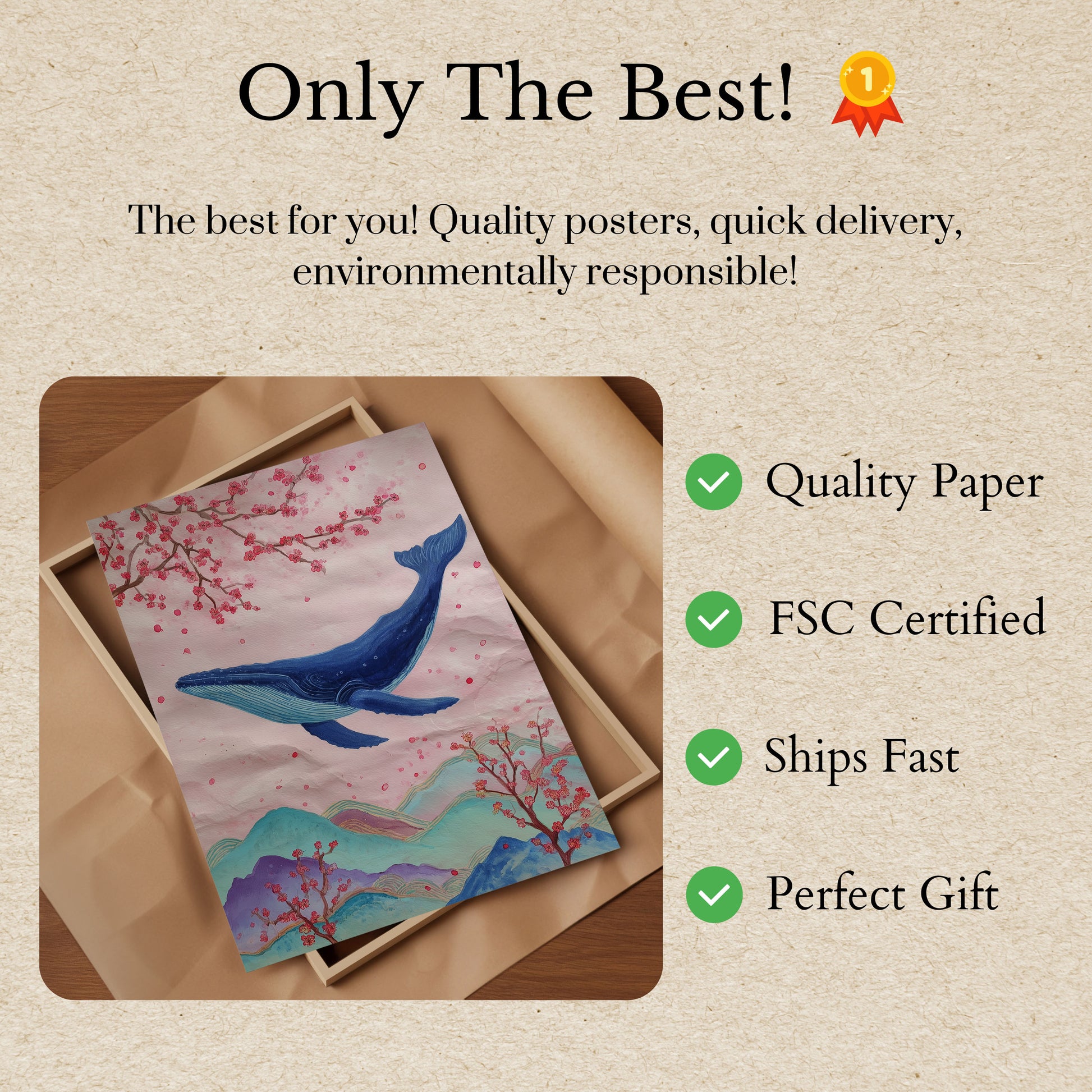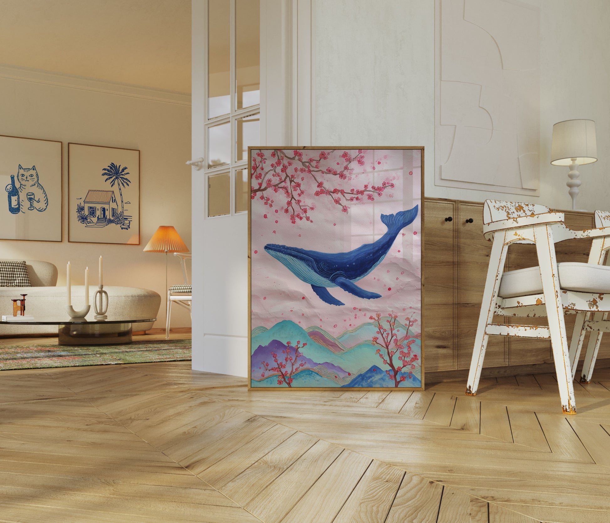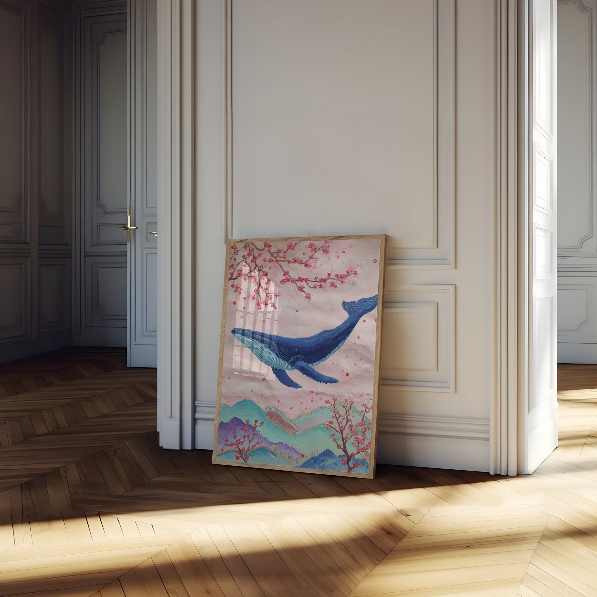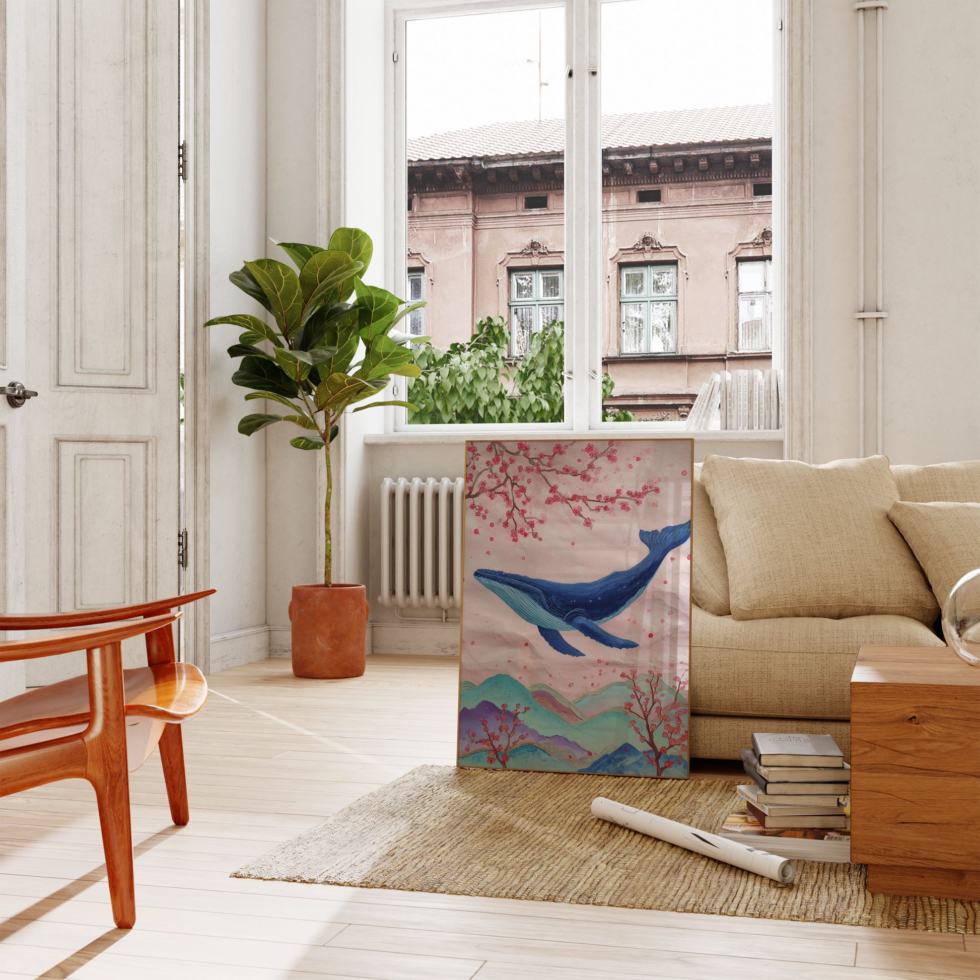 Plakat z Niebieskim Wielorybem i Kwiatem Wiśni