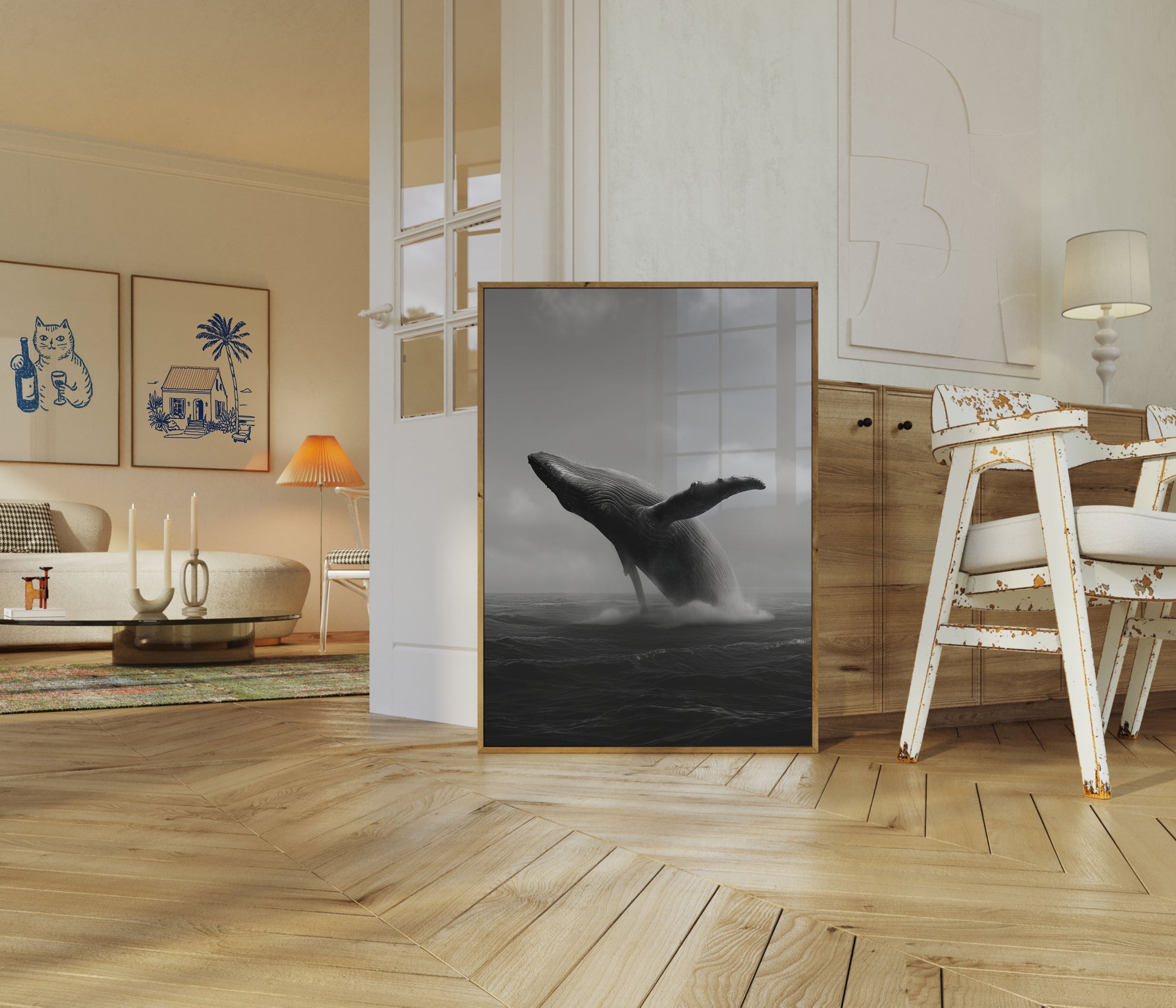 Majestatyczny Wieloryb Wyskakujący z Wody Plakat