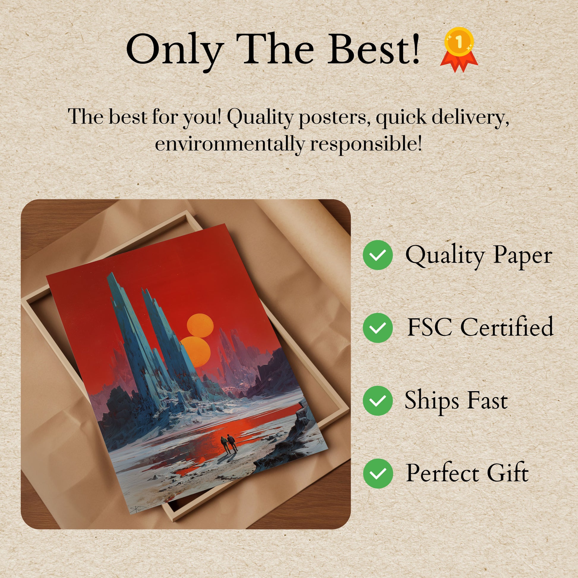 All our Posters are made with thick, premium 170 g/m² paper that's FSC-certified for eco-friendly assurance.