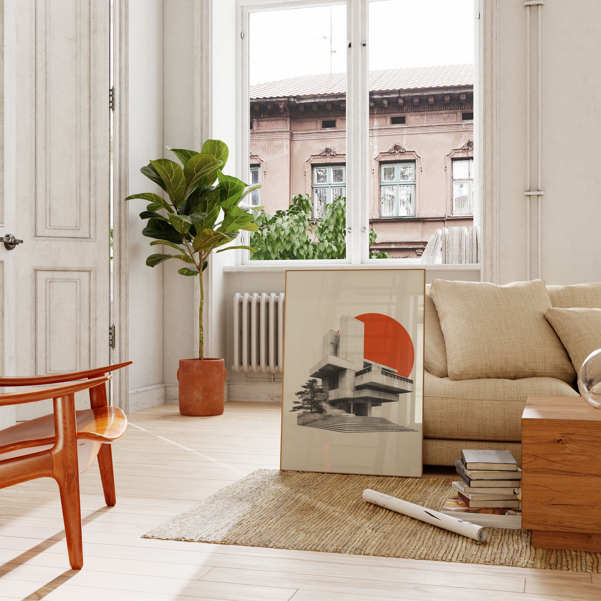Brutalist Architecture Sunset Poster