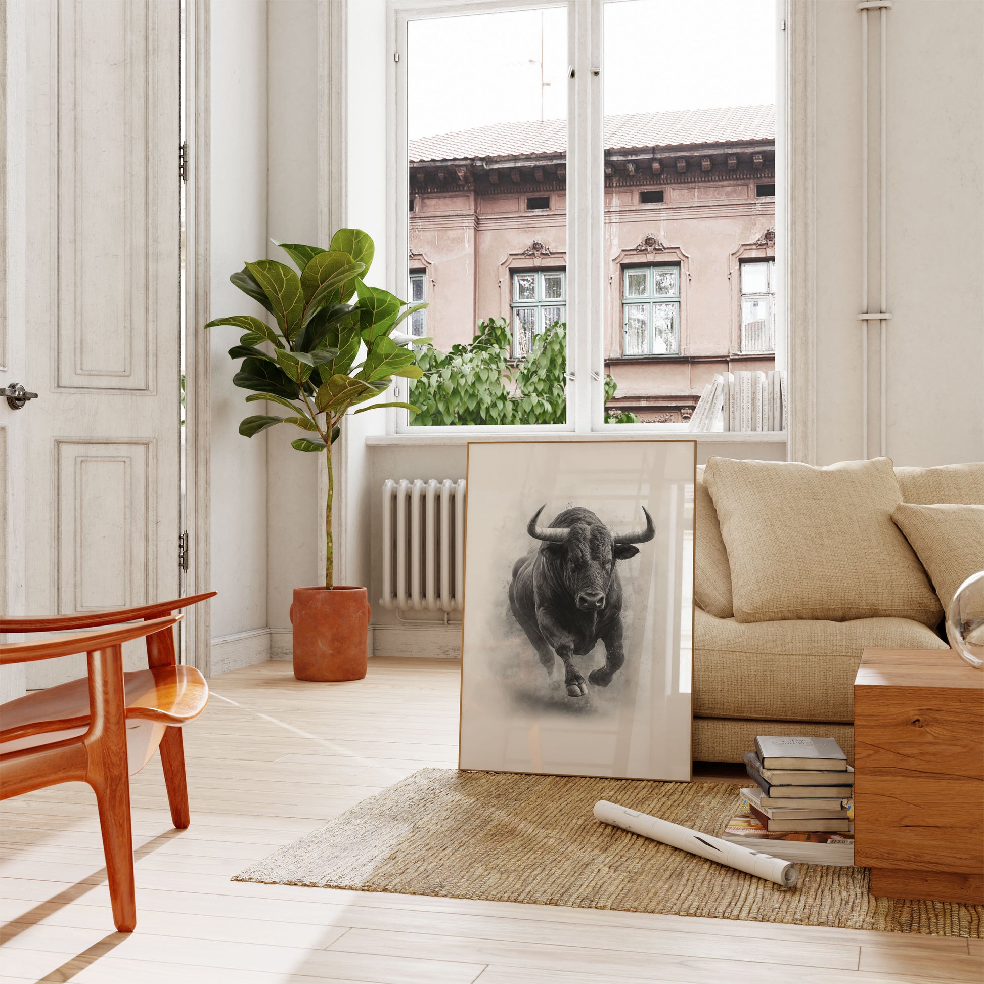 Charging Bull Black and White Poster