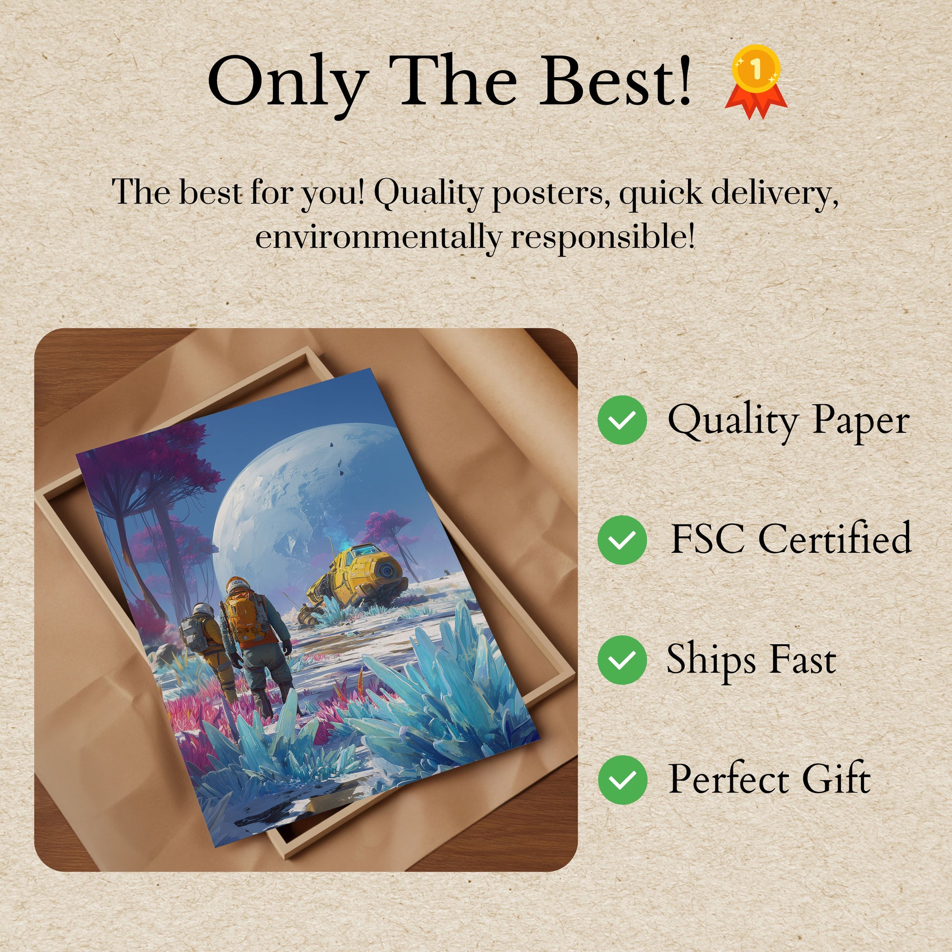 All our Posters are made with thick, premium 170 g/m² paper that's FSC-certified for eco-friendly assurance.