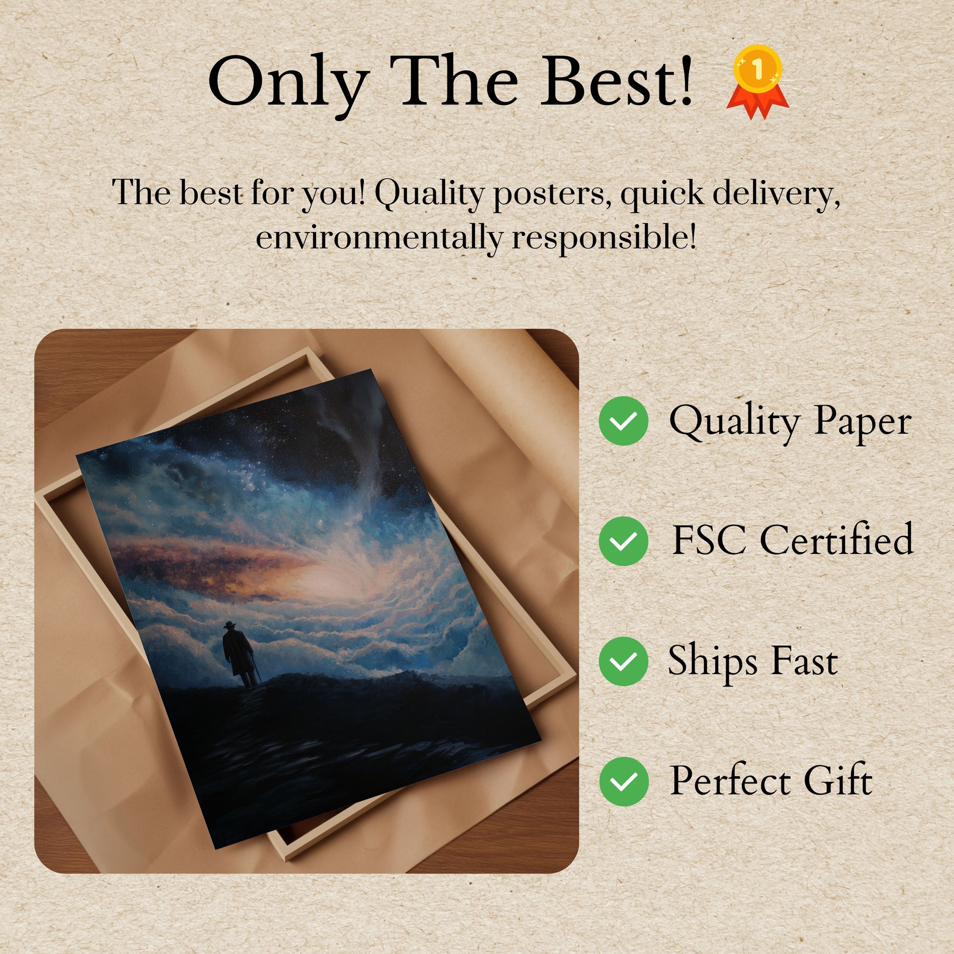 All our Posters are made with thick, premium 170 g/m² paper that's FSC-certified for eco-friendly assurance.