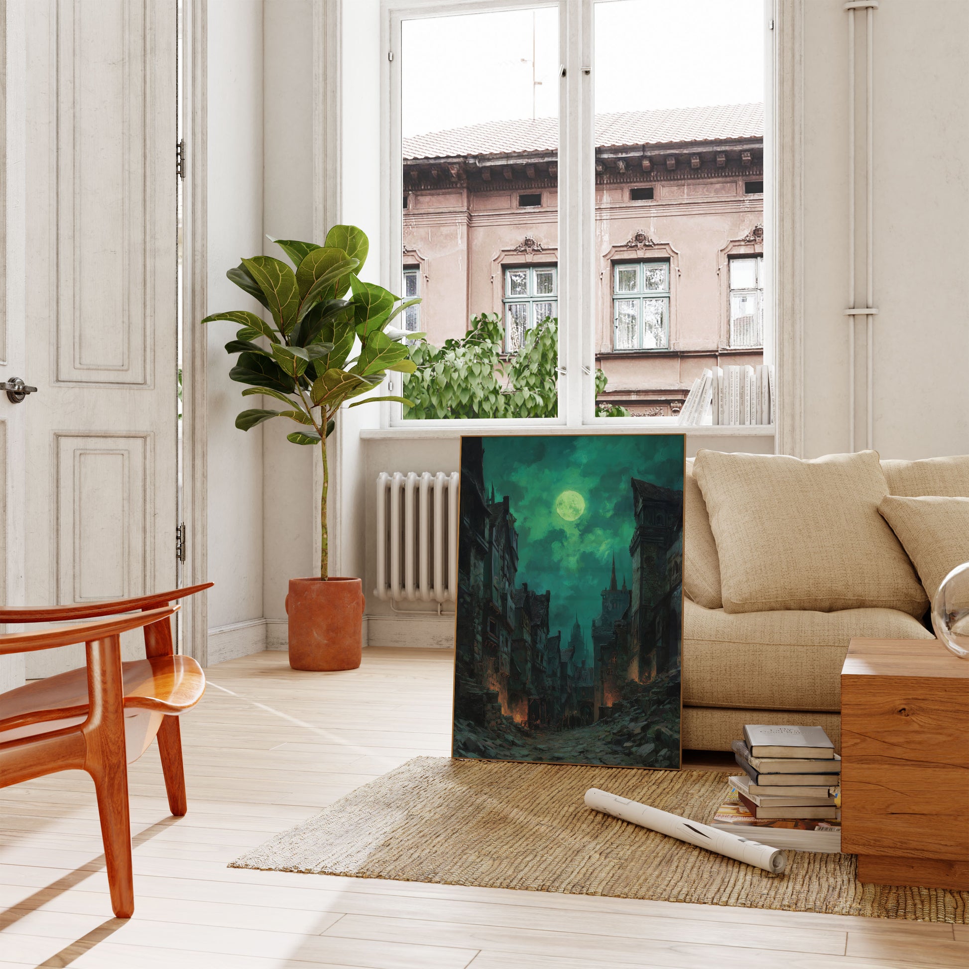 Haunting Moonlit Medieval Cityscape Poster