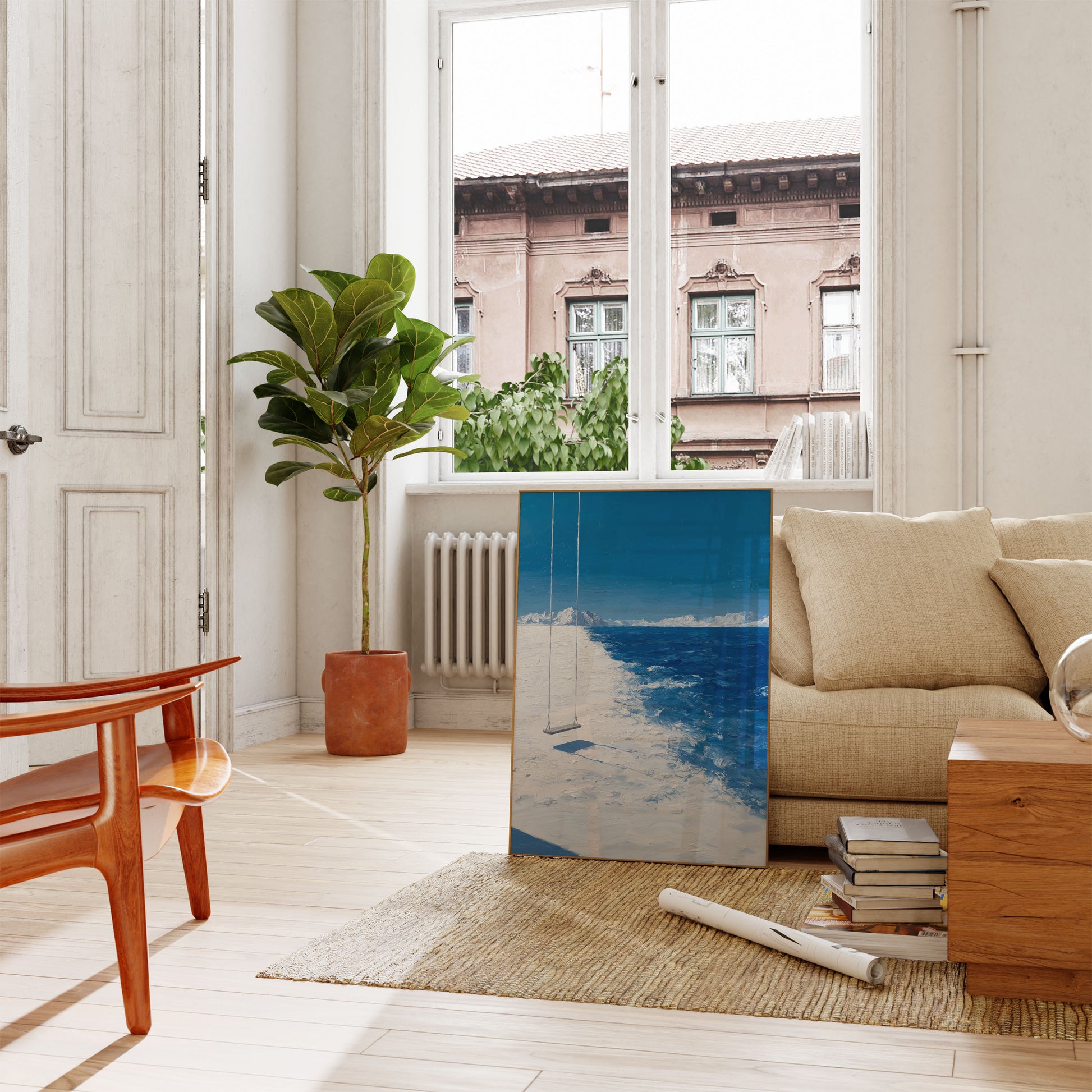 Solitary Swing Ocean Landscape Poster