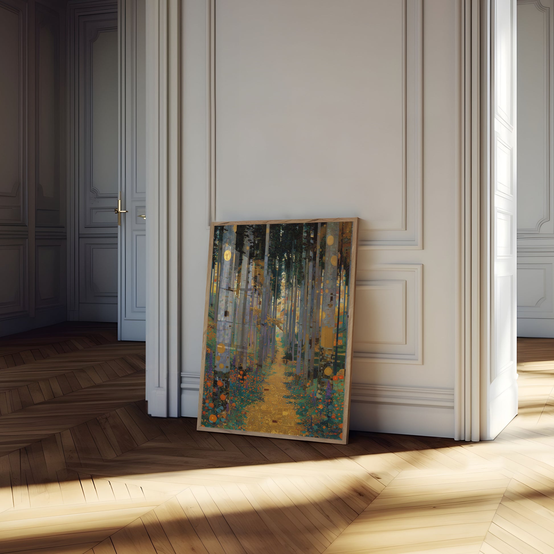 Step into a mesmerizing digital dreamscape where towering skyscrapers transform into a mystical forest corridor. This stunning artwork blends modern architecture with natural beauty, creating a serene passage lined with vibrant wildflowers in rich oranges, purples, and teals. The composition draws your eye down an enchanting pathway where nature and urban landscapes merge in perfect harmony, evoking a sense of wonder and tranquility amidst the complexity of city life.