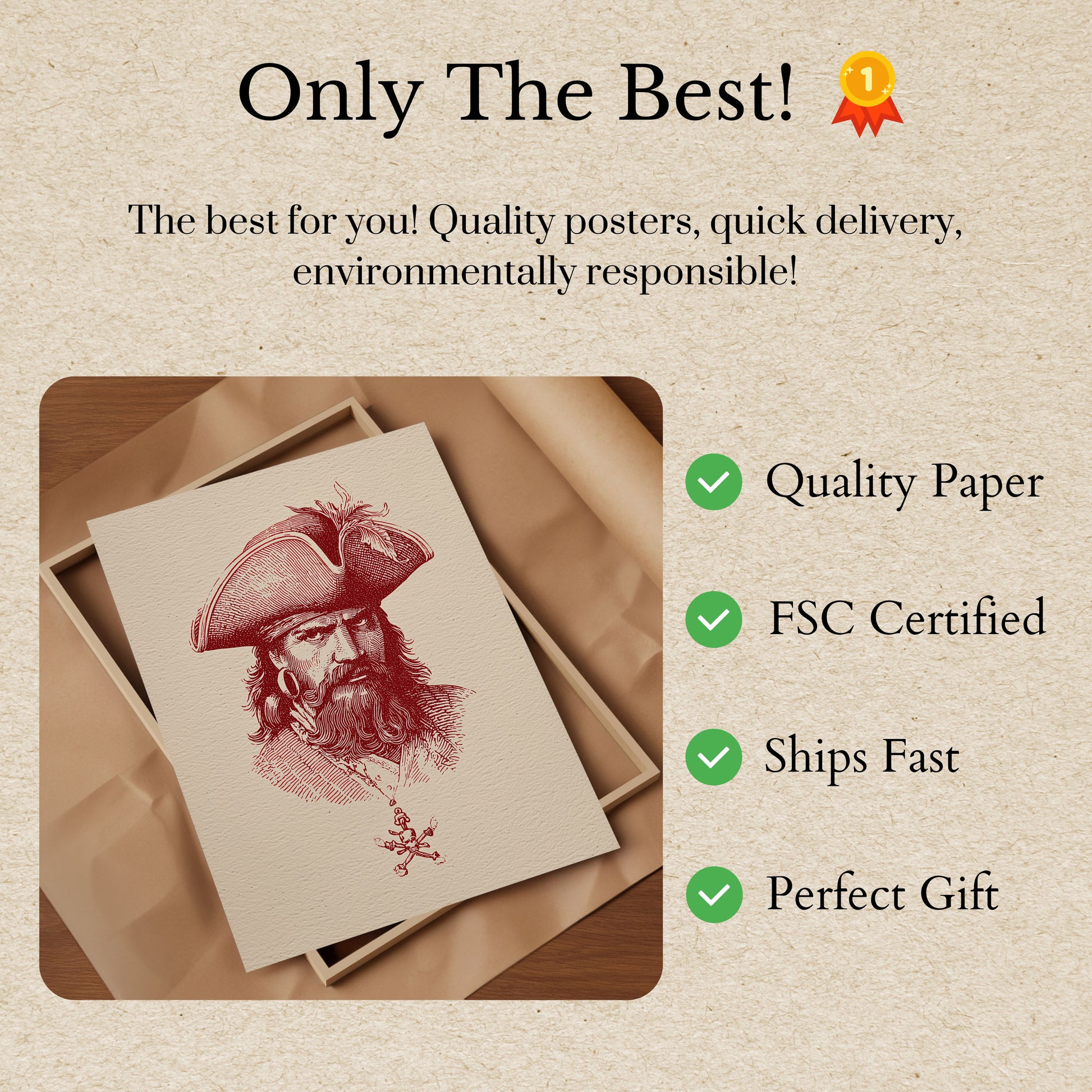 Step into the dramatic world of high-seas adventure with this intricately detailed red-toned illustration of a rugged pirate captain. The vintage-style etching captures the fierce spirit of maritime folklore, featuring a weathered sailor with a tricorn hat, flowing beard, and a piercing gaze that tells tales of oceanic conquest. An ornate anchor cross pendant adds a symbolic touch of nautical mystique.